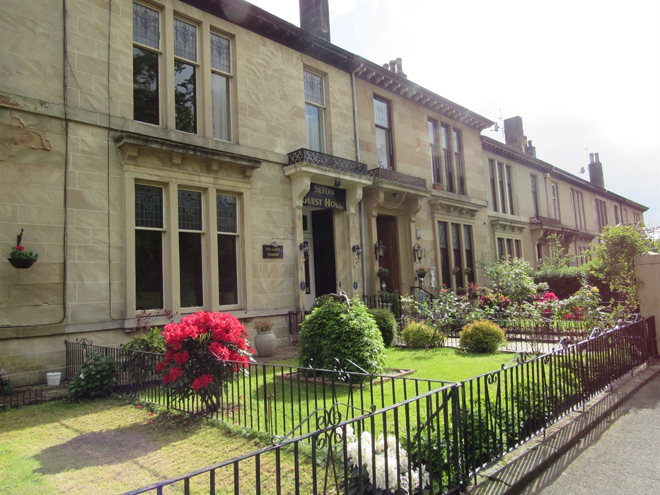 Guesthouse on a quiet Victorian terrace with free street parking. Most rooms en-suite. All with modern amenities. Close to M8/M74 and rail station. 20 min walk or 10 min by bus to city centre. Highly rated restaurants a 5 minute walk away.
