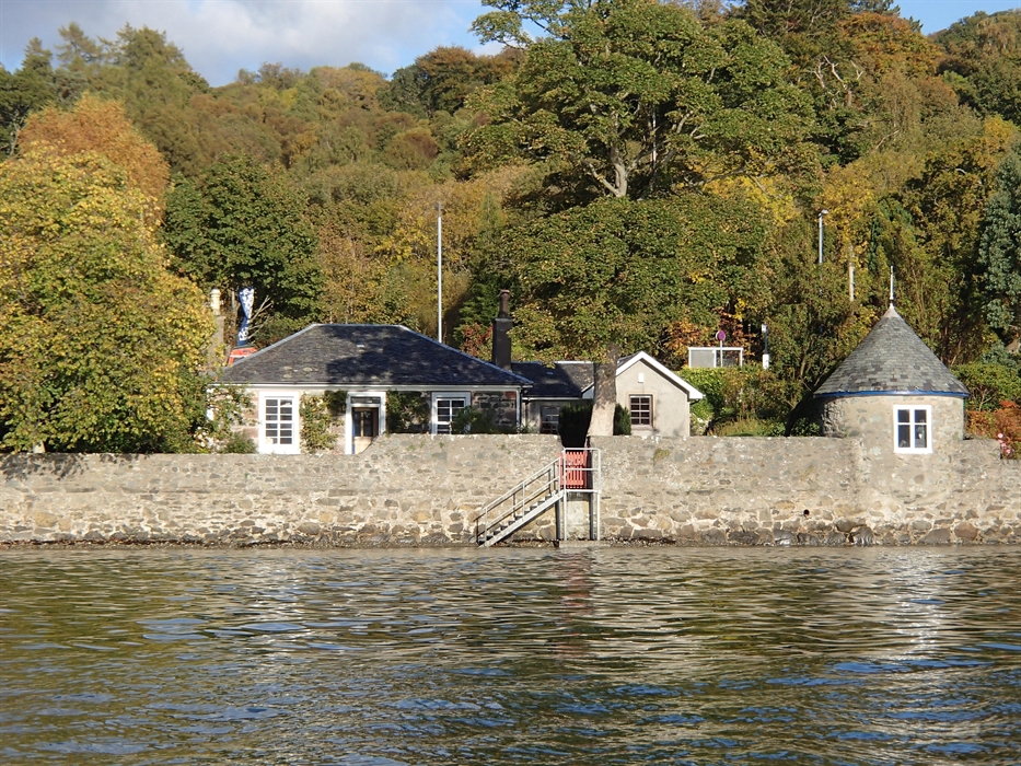 The cottage shares a secluded site of about half an acre with our house, Inverallt. There are many large trees in the garden and surrounding land. Parking is on site. The spacious garden is bounded by the sea wall which has a towered summerhouse and provides access to a shingle beach which is covered at high tide. A patio, alongside the summerhouse and the sea wall has garden furniture and a BBQ. A variety of garden, shore and sea birds abound. Naval and other vessels frequently sail by. Bring your binoculars!