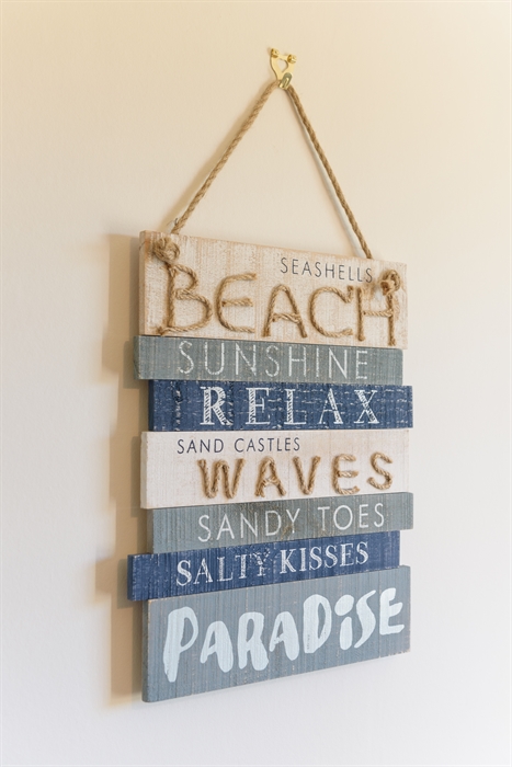 Ground Floor: Small step down from car parking, small step up to Entrance Porch/Hall with utility cupboard for washing machine and dishwasher; Boot room, Kitchen/Dining room with sea view from kitchen, electric 4 ring hob and oven; Sitting room with electric wood stove style heater, smart TV and smart speaker; Large sun lounge with sea views, dining table and French Doors to garden; Hallway off sitting room to bedrooms; Bathroom with over bath shower; two Twin bedrooms; Super-king size bedroom with French doors to garden and sea view.
