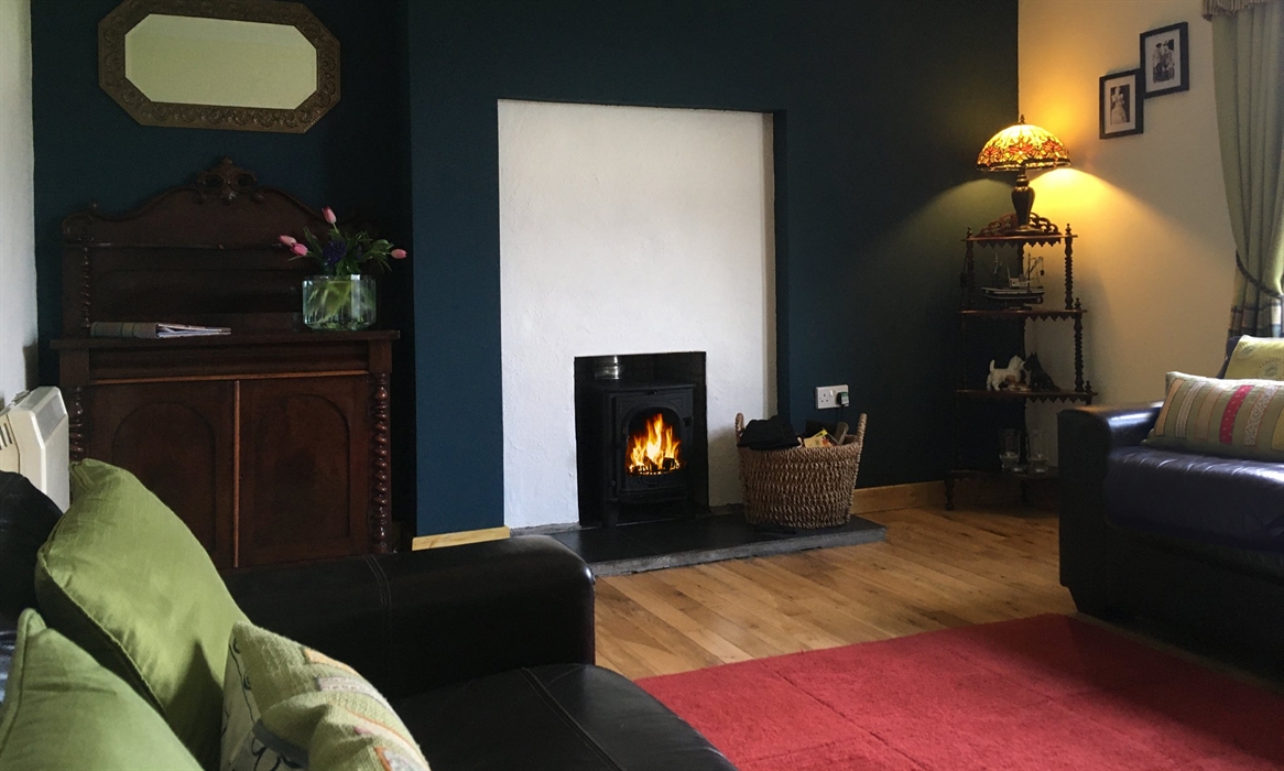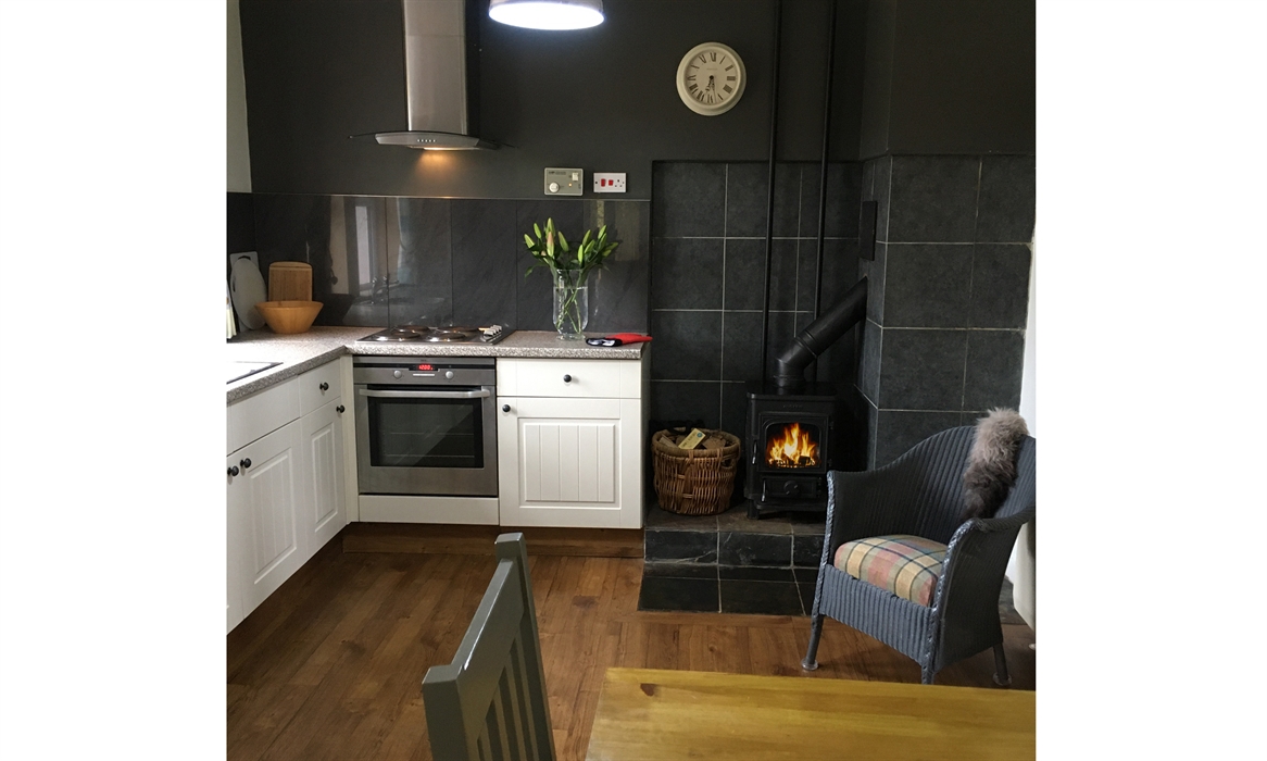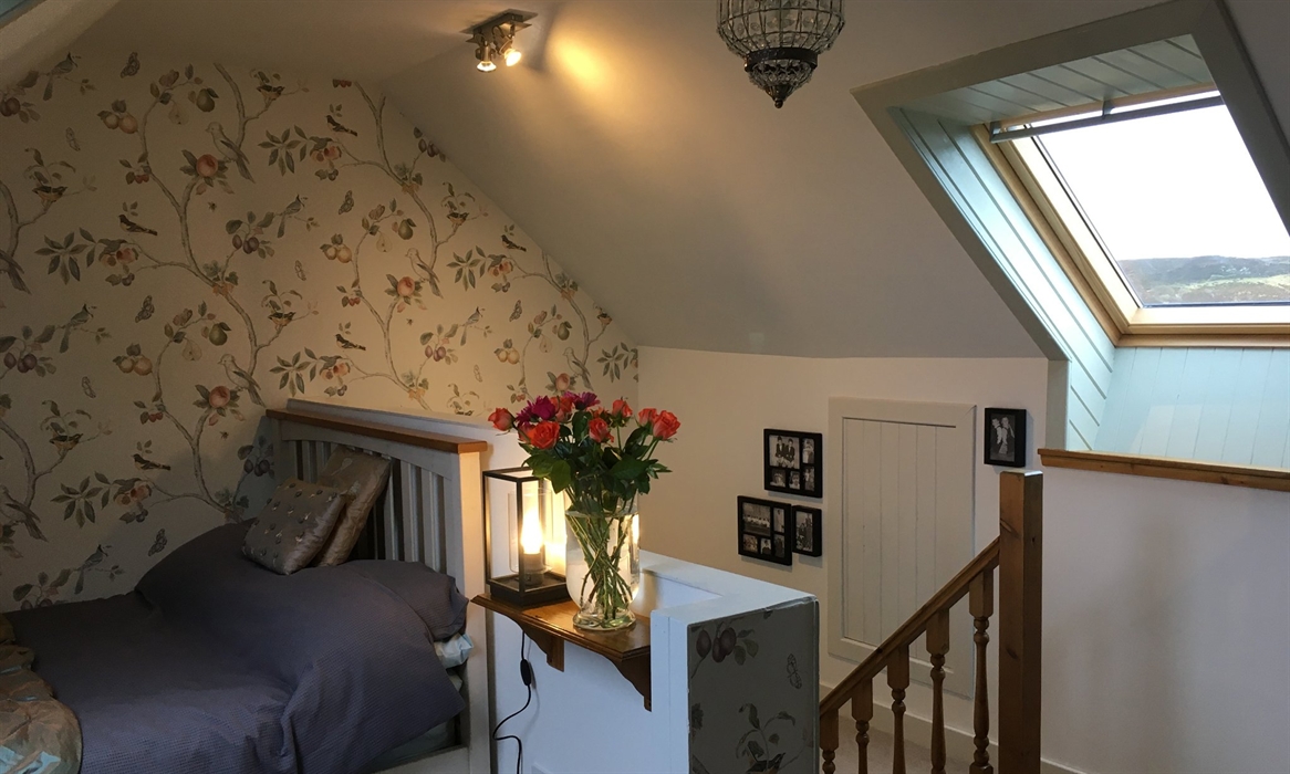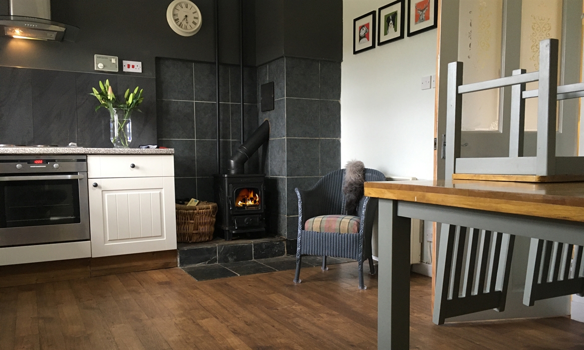 The upstairs gallery bedroom, a double, is wonderfully romantic, with an inglenook style bed in glorious colours inspired by the landscape. Candles, flowers, and quirky old photos endear this room as a very charming island retreat. Lie at night and enjoy the stars and moon in the skylight window. If you leave the blackout blind open sunrise will greet you with a warm rosy good morning, while the evening sunset engulfs you in a rich golden glow. The kitchen-diner is spacious and with a log-burning stove, dinner table and chairs it invites you to indulge in fine food and wine. Contemporary colours, a fireside armchair and images of Hebridean life make this a living kitchen. Sit by the log burner and read, while the cosy warmth drifts upstairs to add extra heat to the bedroom. The living room has fabulous sea-views whatever the season and weather and is easily enjoyed from the fireside whose log-burning stove invites you to sit back and chill out! It is entirely possible to view the aurora indoors from the fireside if a lucky display happens during your visit. The colours of the Hebrides are brought to this room through the contemporary palette of Isle of Skye Paint Company and the traditional local dye colours of wool tartan soft furnishings. Characterful old island photos bring some insight into our Hebridean heritage. TV, DVD and WiFi are provided to keep you connected. The bathroom has views to the Trotternish Ridge from the Jacuzzi and candles invite you to truly relax after an energetic day out or simply pamper yourself because you deserve it.