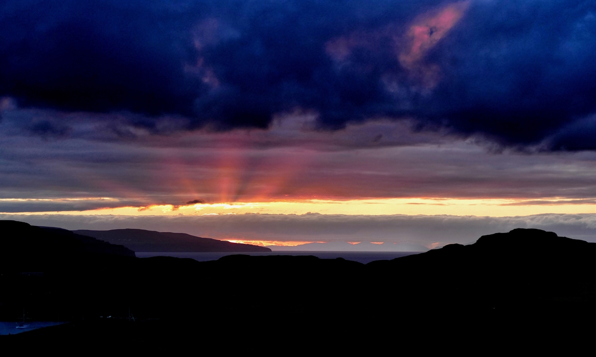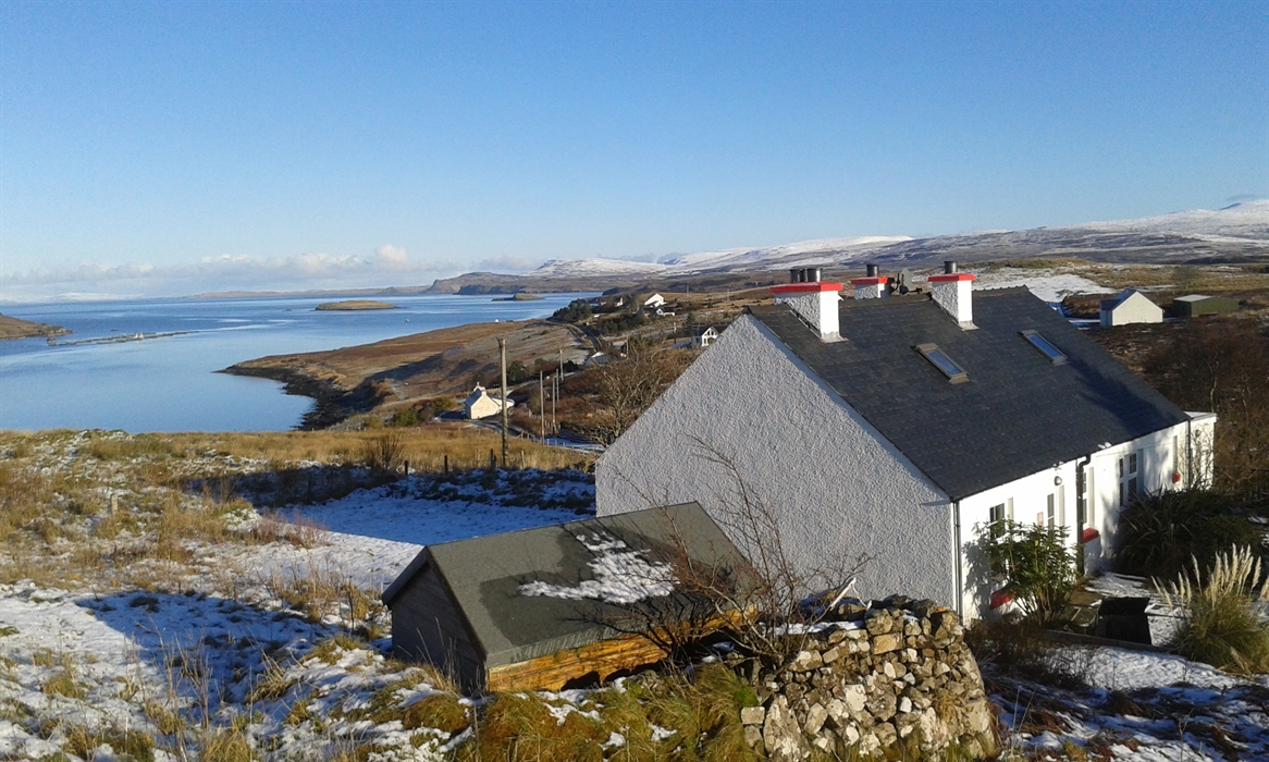 'Stay with us on Skye' to escape & explore, or relax & romance, you'll love it! Shiant, with garden and land above the shore, enjoys magnificent views over Loch Snizort to the Outer Hebrides. Alight with summer sunset, or dusted with winter snow, the view is captivating, sunrise & sunset glorious, and Aurora an awesome experience. A refreshingly inviting holiday apartment, its distinctive Highland character, invites you to truly unwind after an energetic day or simply pamper yourself because you deserve it.