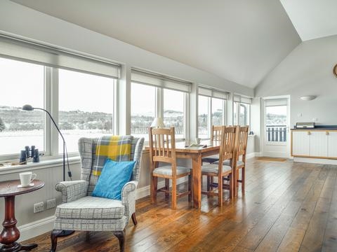 Something a bit special! This detached wooden property, newly built in 2004 in the form of a signal box, is adjacent to the station in Newtonmore. The accommodation is upside down with an open plan living area and a double bedroom and bathroom with s