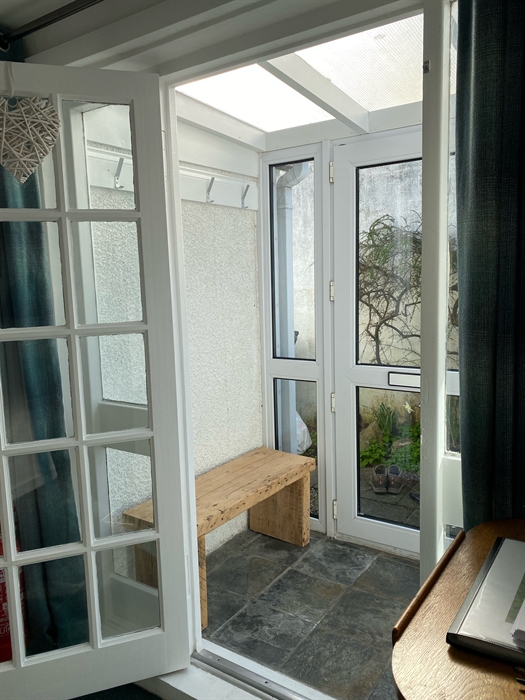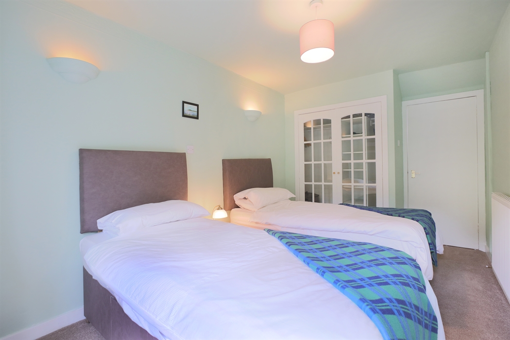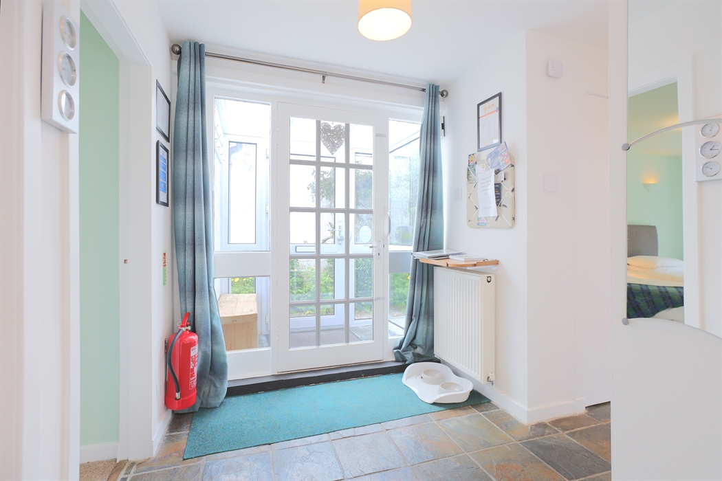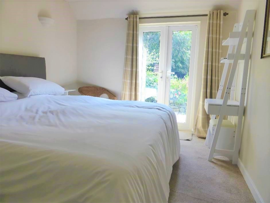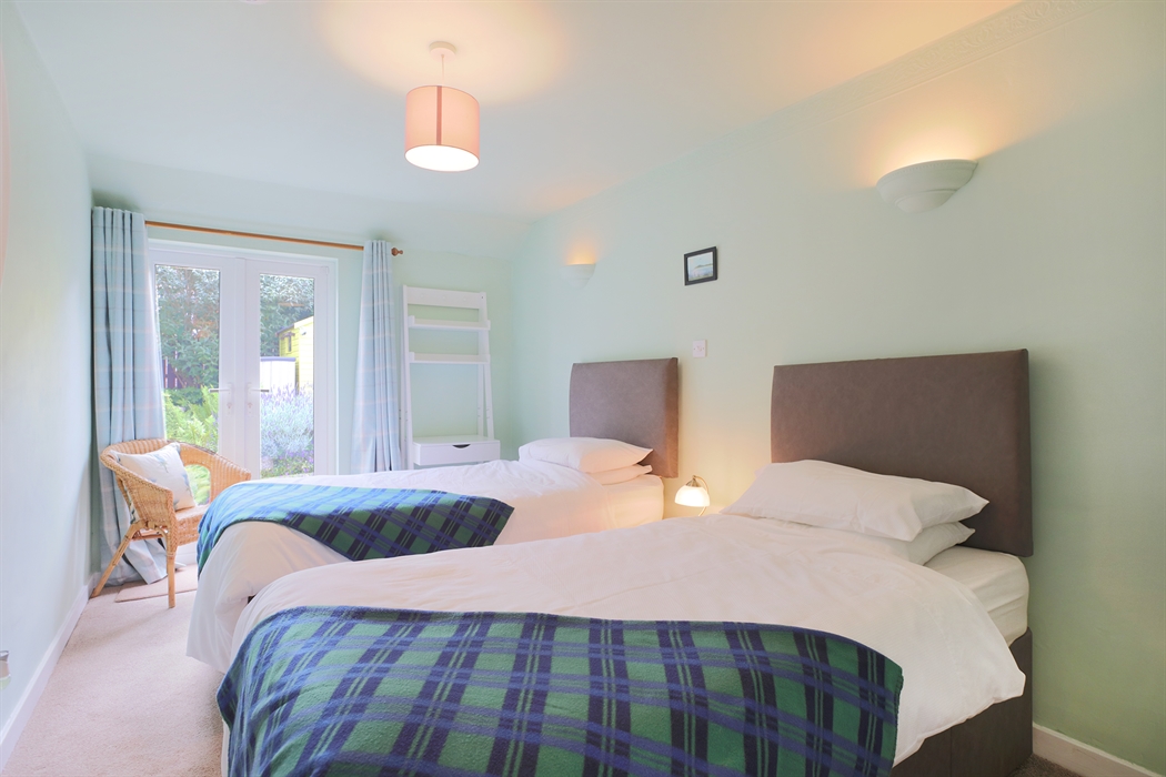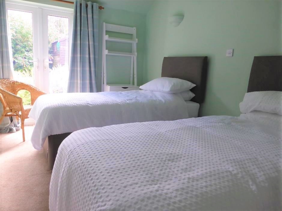 Accommodation for 4 on one level: Steps down to Front Vestibule/Boot room; Step to Hall. Sitting/dining room with gas fired stove; Kitchen; One Super King size bedroom; 1 bedroom with two single beds that can be made up as a King-size double (zip & Link beds please let us know your preference when booking), both bedrooms with French doors to paved patio garden; Shower room.