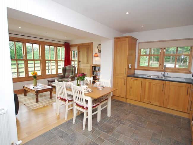 The accommodation offers TWO bedrooms: 1 double with en-suite shower and WC accessed by spiral staircase and 1 twin located on ground floor. Bathroom: with shower over bath and WC located on ground floor. Lounge: with woodburner (solid fuel provided), TV, Freeview, DVD and hi-fi. Kitchen/diner: open-plan with additional seating in sun room area, cooker, microwave, fridge/freezer, dishwasher and washer/dryer. Outside: enclosed garden with garden furniture to appreciate the stunning surroundings. Amenities: ample off road parking. Bed linen, towels, electric, central heating and Wi-Fi included. Regret no smoking. Regret no pets. Additional info: regret no short breaks. Location: shops 4 miles. Arrival: 4pm.