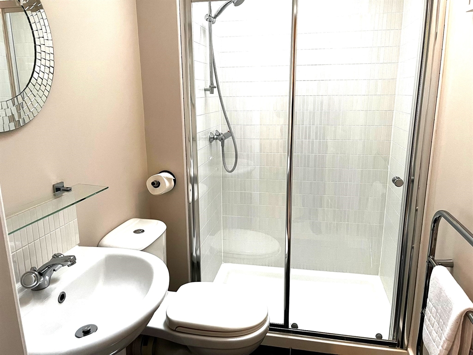 Bathroom: With shower over bath, , heated towel rail and under floor heating
