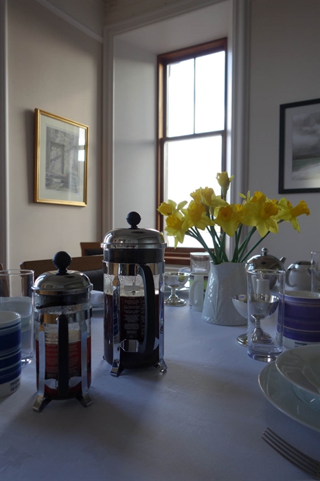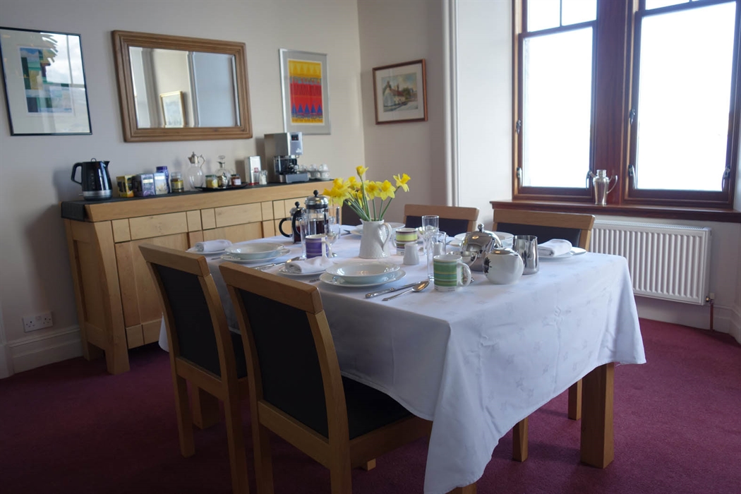 "Pippa and Colin gave a warm welcome, providing very comfortable, luxurious accommodation with much attention to detail. Although the wind got up in the night, we slept like babies in an extremely comfortable bed. We found South Ness House perfectly located to experience the Knab a local coastal walk, or in the direction of the town centre, winding our way through old narrow fishing streets with quite a few craft shops open even on Sunday. There were ever changing sea views with ships and smaller vessels passing close by as we enjoyed a mouth-watering breakfast cooked by Colin. Pippa was very helpful with places to visit and supported our choice of both restaurants Fjara, opposite Tesco and Hays Dock, above the Shetland Museum. Homemade scones and flapjacks were available in the peaceful, white linen dining room and on our very early morning departure they went out of their way to make sure we had a wholesome continental breakfast after we turned down Colin's kind offer to cook eggs as early as 6am for us! During our two night stay, we spent a couple of evenings attending the annual folk festival, hiring a car with time to see both the local RSPB reserve at the Sumburgh Head Lighthouse and enjoying the view from the cafe, browsing some local knitwear and exploring Eshaness with its stunning array of stacks, blowholes and geos, followed by a cappuccino in a local community centre with fantastic views nearby. The wild, barren landscapes of Shetland are in complete contrast to that of Orkney but every bit as breath-taking. We look forward to returning sometime in the future and would make South Ness House our first port of call without hesitation!" May 2016.