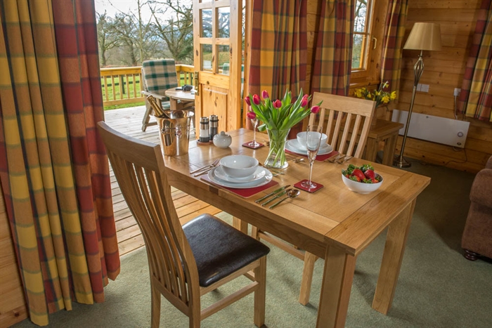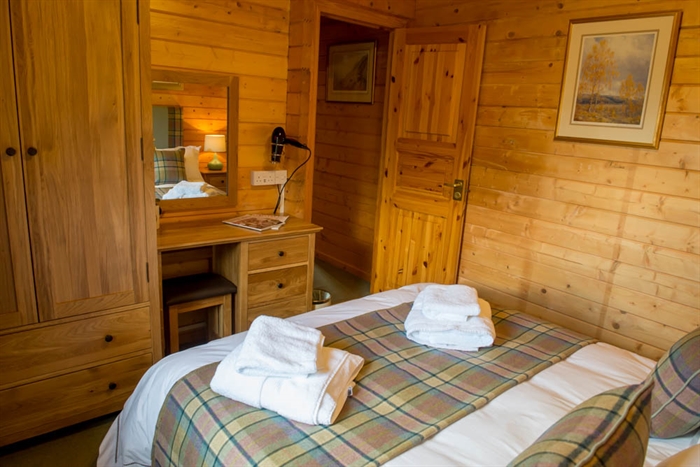 A luxury two bedroom Scottish Highland Lodge with a wood burning stove, under cover deck and pet friendly.
