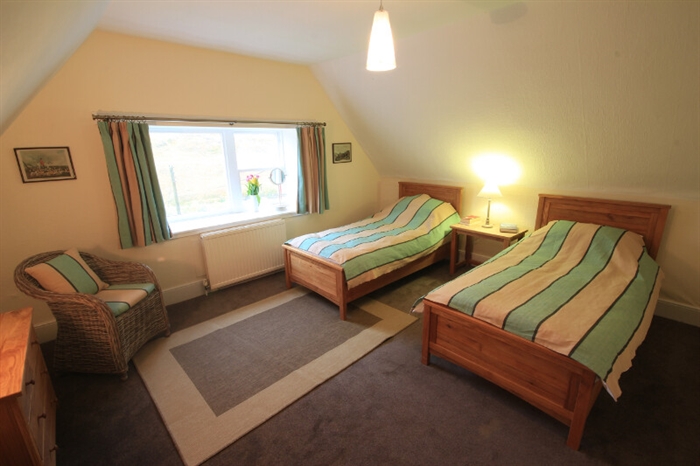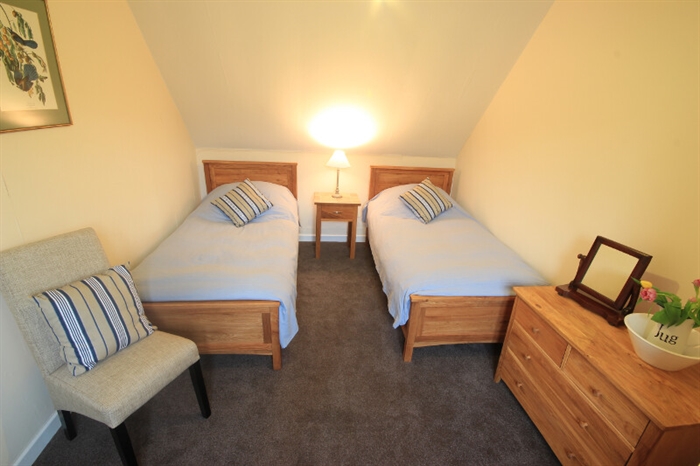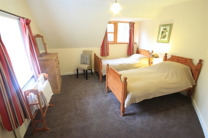 On the first floor are the three twin bedrooms, which are ideal for either adults or children. Each room has been individually decorated to create a unique feel and the large windows allow plenty of light to reach every corner. All the twin bedrooms have gorgeous viwes of the garden and glen. The family bathroom fitted with bath, sink and loo is also on this floor and is a great place to enjoy a long hot soak in the tub with a magazine or glass of wine.