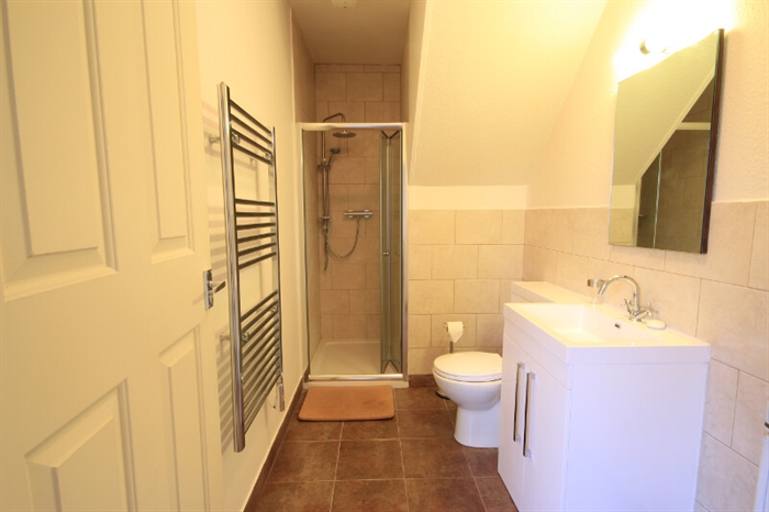 Located on the ground floor is the Master Bedroom; this light and airy room has a large window and very pretty views of the garden. The comfy double bed made up with crisp white bed linen guarantees a good nights sleep, while the cupboard and chest of drawers provide space for a large holiday wardrobe. Just a few steps down the corridoor from the Master Bedroom is the downstairs shower room, which if required can be used as an en-suite or second family bathroom.