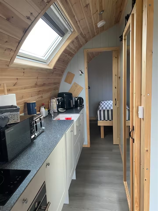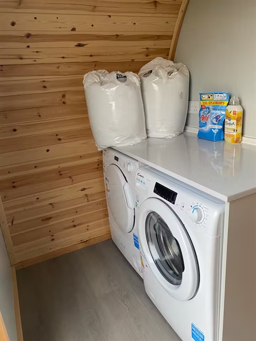 Each accommodation pod is private and solely for your use, the utility building is currently private for the one pod on site and will be shared in fuuture. It contains a washing machine, 2 tumble dryers, iron and cleaning supplies.