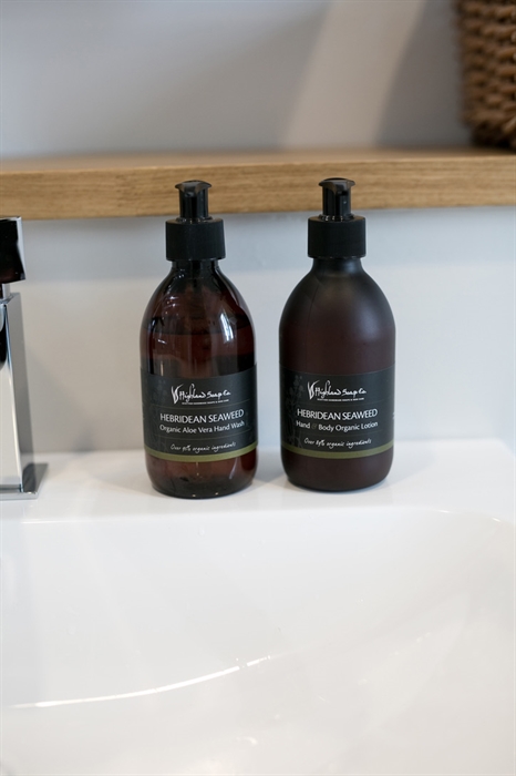 Spacious, luxurious bathroom with large double-ended bath, big enough for 2 and a fixed overhead shower. Wash hand basin and WC. Wick-chat chair with soft sheepskin rug. Large Velux window with stunning views over the countryside. Our bathrooms are the perfect space to relax and unwind with hot water, just add bubbles.