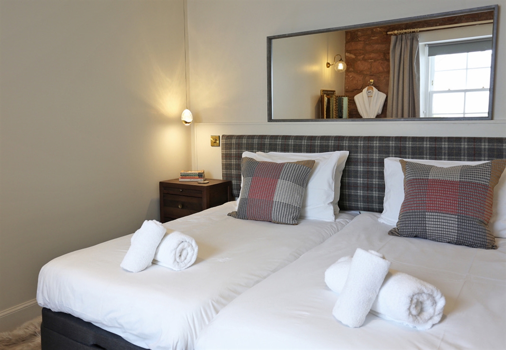 This bedroom can be prepared with either a super king size bed or as a twin room. We value a good night’s sleep and the beds provided have this in mind, the frequent compliments about the beds in all our cottages gives us confidence we have got this correct. Other features include USB sockets for charging on both sides of the bed, wall mounted smart TV, full length mirror and vast views of The Lammermuir Hills out the front.