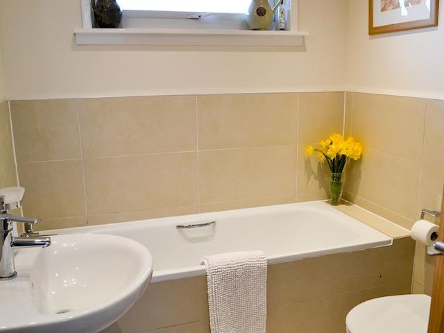 You deserve to sleep well and wonderfully on your holiday. Beds at Summit Cottage have luxurious mattresses, fine crisp white cotton sheets and covers and highest quality *down & feather bedding for ultimate comfort. There are three bedrooms, sleeping six: one king bedroom with en-suite shower room, one double bedroom and one twin bedroom, all on the ground floor. All rooms are made up with bedding, fluffy white towels, and extra blankets. The family bathroom is a lovely calm oasis in which to unwind after a busy day in Oban. *Mirco-fibre duvet and pillows are also supplied.