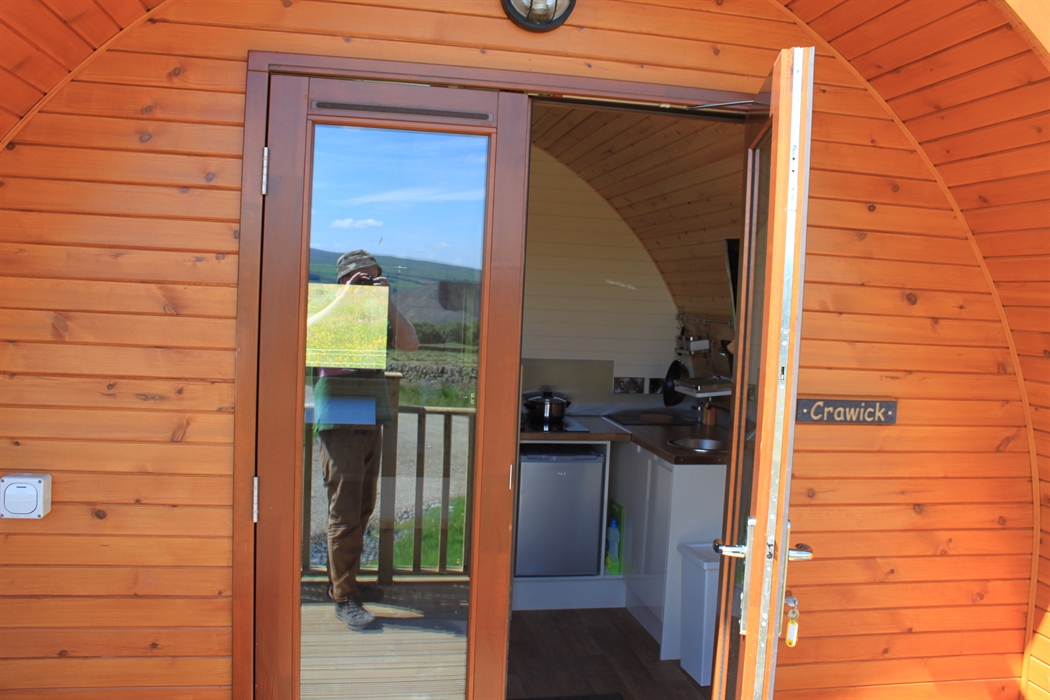 Sunnyside, with its hand crafted, innovative compact glamping pods, which are ideal for short breaks or longer stays, enjoys splendid views across the richly arable land amongst the Lowther hills, a perfect place for the rambler, walker or nature lover.
