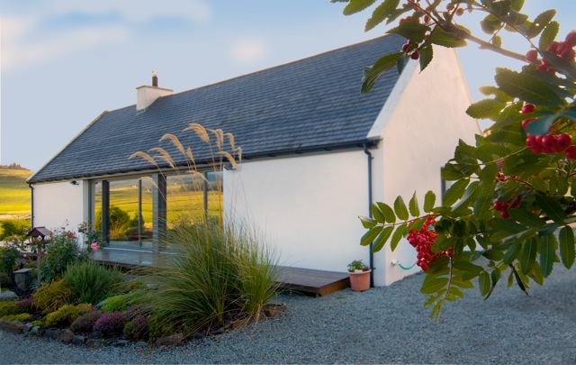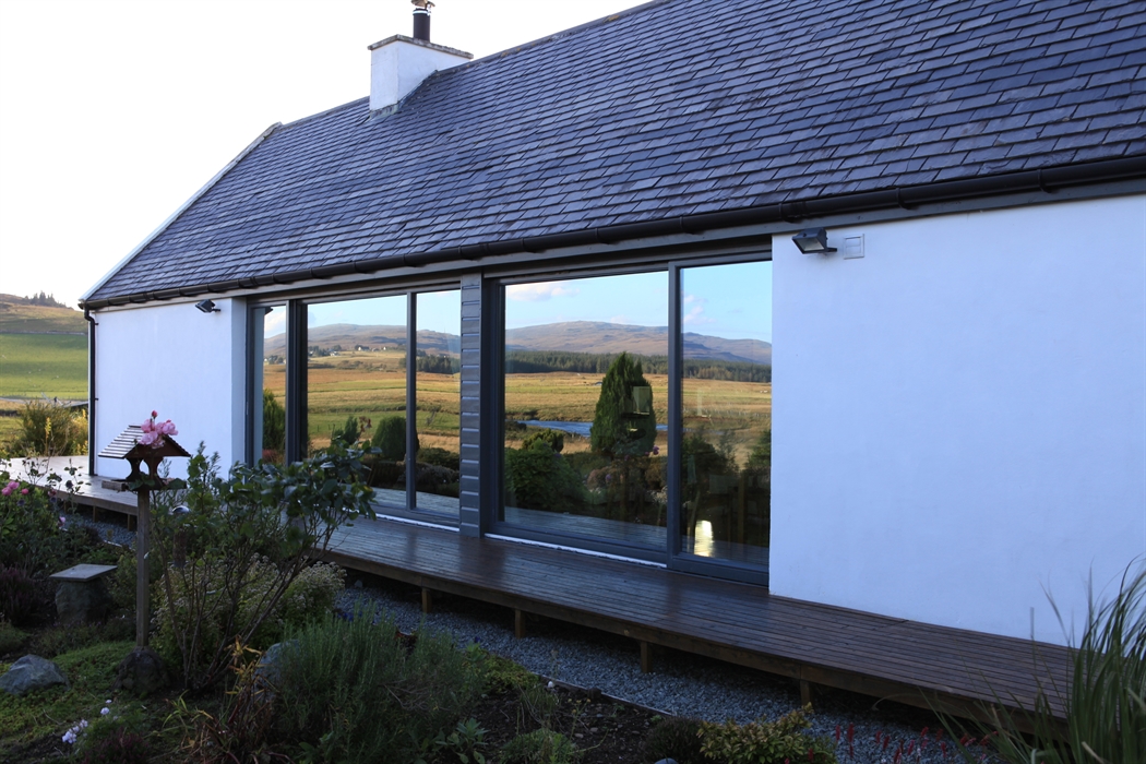 Welcome to Taigh na h-aibhne an award winning design holiday home for up to four people in two en suite bedrooms. Our living area has a vaulted ceiling with glazed wall allowing dramatic views from the house in all seasons.