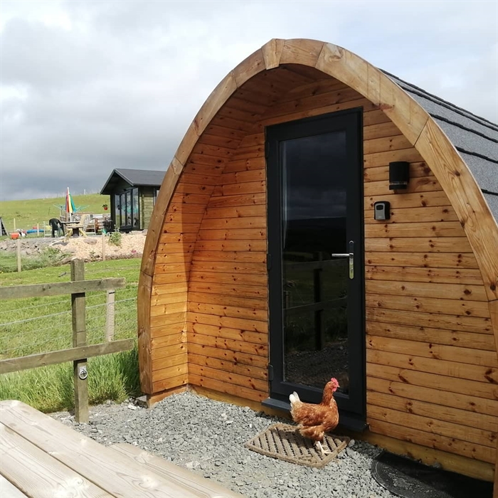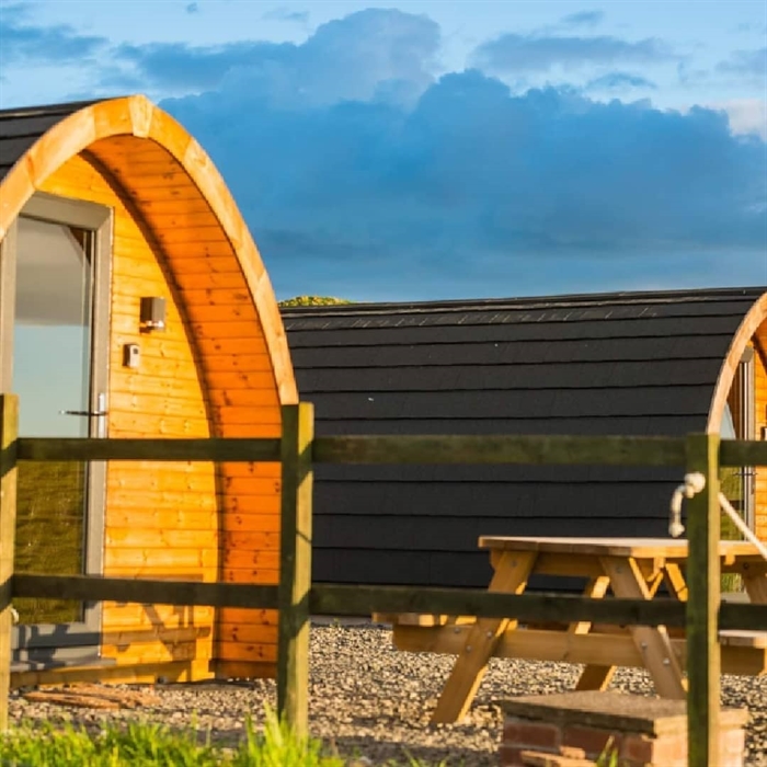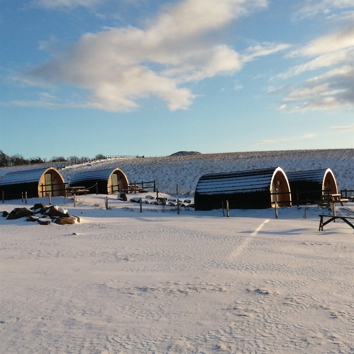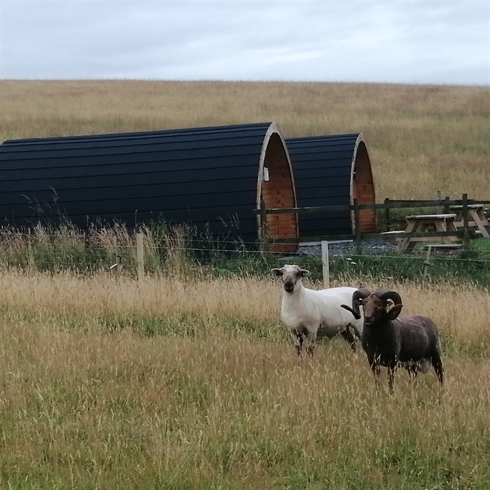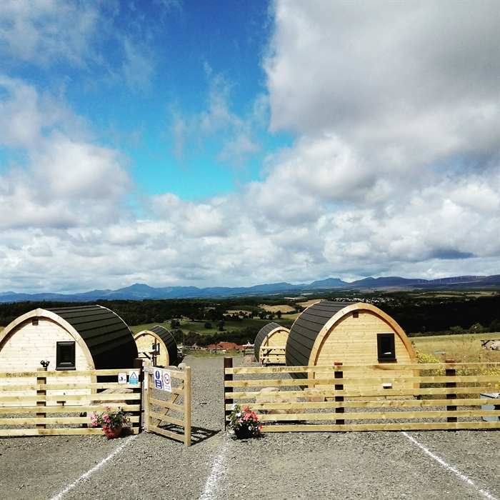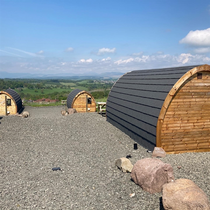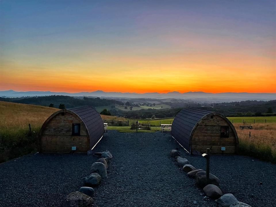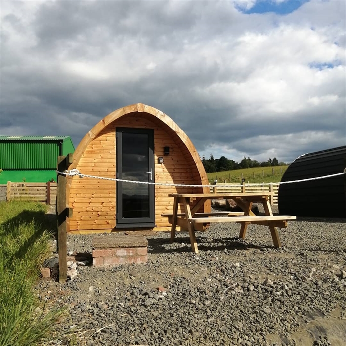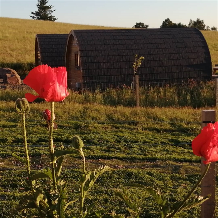 Luxury Glamping Pods set on a working small holding in Bridge of Allan. Stunning views. Each luxury pods has its own shower room (shower, toilet and sink) and can sleep 2 adults and 2 children. Maximum 2 well behaved dogs on a lead per pod.