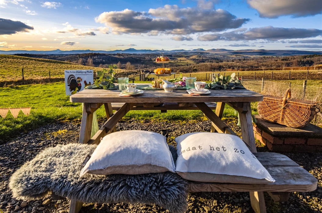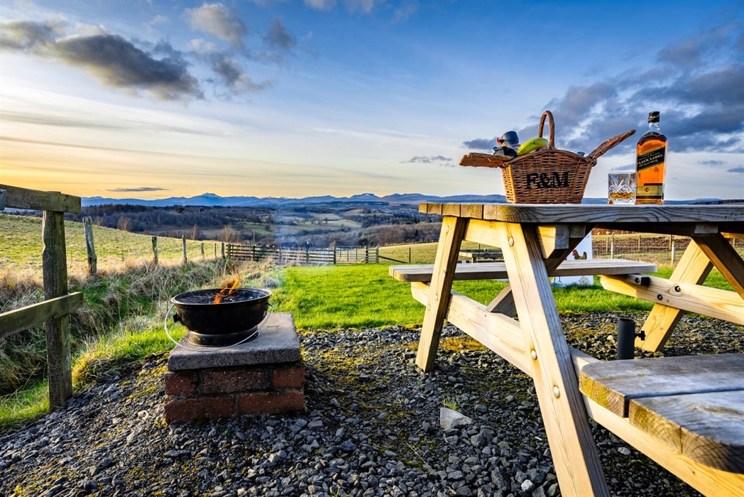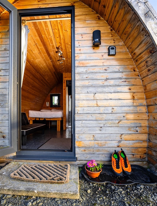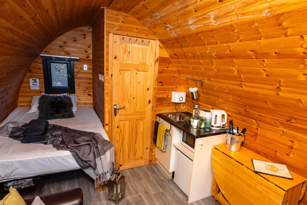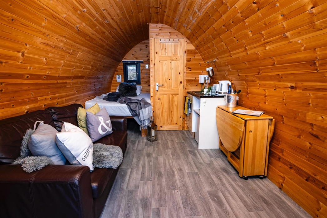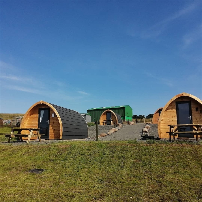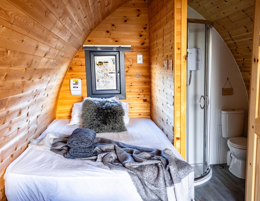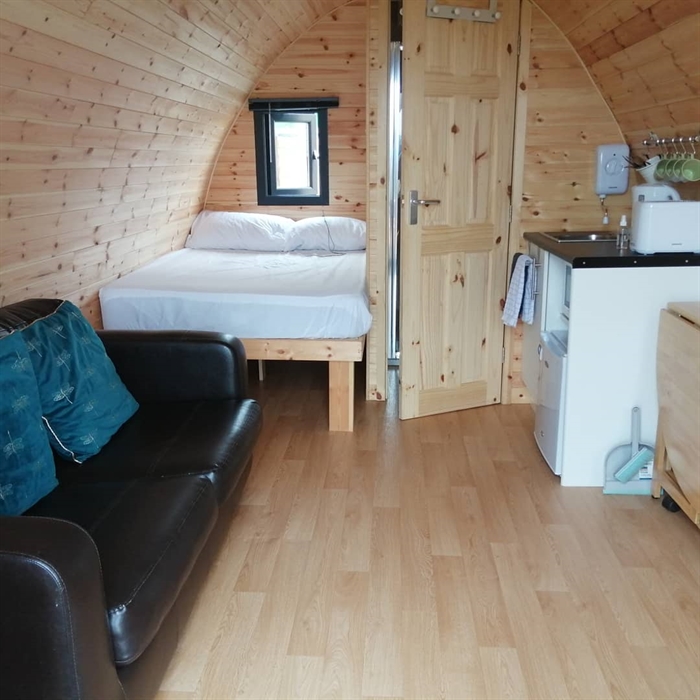 Luxury Glamping Pods set on a working small holding in Bridge of Allan. Stunning views. Each luxury pods has its own shower room (shower, toilet and sink) and can sleep 2 adults and 2 children. Maximum 2 well behaved dogs on a lead per pod.