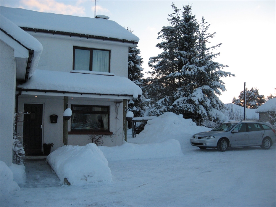 We are a large white detached house on the main street in the centre of the Village. We are a family run Guest House near Aviemore and within the Cairngorms National Park. We also have a self catering onsite chalet which sleeps up to 6 guests.