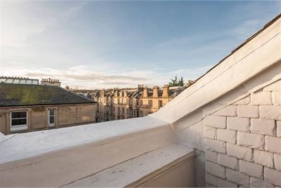 Situated in a quiet, residential building "The Bonnie Thistle" is a well appointed, tastefully decorated 4th floor loft apartment that is accessed by a lift. The double bedroom has a super king size bed that can be divided into two single beds if required. The apartment can accomodate up to two adults very comfortably. Unusual in the city centre location this property boasts its own small roof top terrace with table and chairs offering a fantastic outside space for guest to enjoy the fresh air and views over Edinburghs Arthur Seat and Calton Hill. The apartment also benefits from having its own secure parking space which guests are able to make use of. The kitchen is fully equipped with a induction hob oven, microwave, fridge freezer and washing machine. Quality kitchen and dining utensils are also provided. The bathroom has a bath, electric shower and heated towel rail. The comfortable living and dining room areas are beautifully decorated in a Scottish Theme. There is also a flat screen, wifi TV. Free Wifi is available throughout.