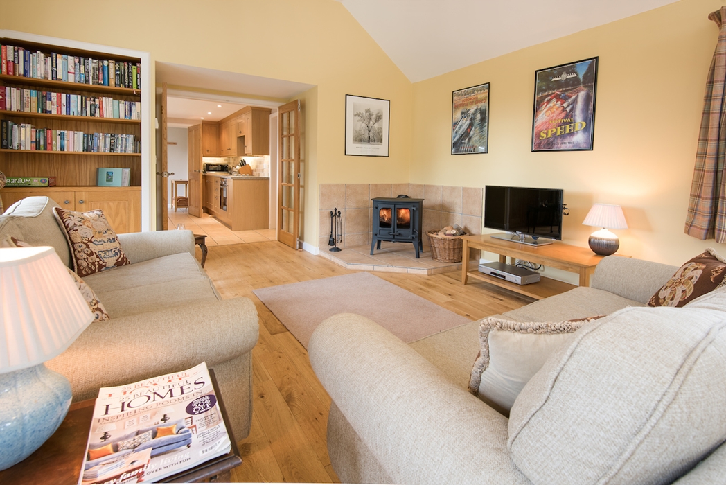 Inside, the sunny open-plan living space is the convivial heart of the house. On warm days, French doors let the fresh Borders air in, or simply relax mind, body and soul in front of the dancing flames of the wood burning stove for those lazy days or cosy evenings when the seasons change and the days grow shorter.