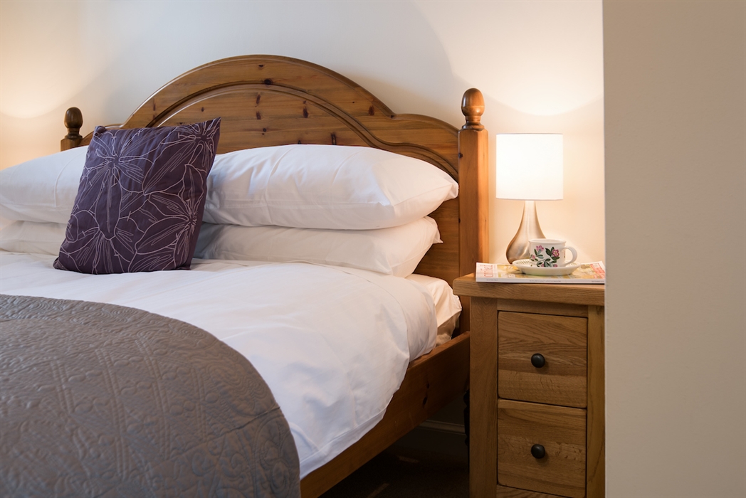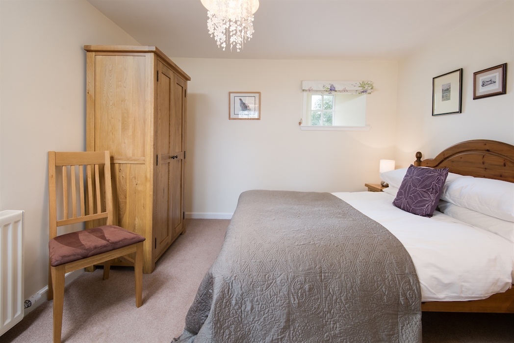 The smart kitchen is well equipped with plenty of thoughtful extras which make this a real home-from-home. The bedroom is warm and comfortable with crisp linens and pretty cottage detailing to ease you into a lovely sleep after a day in the great outdoors.