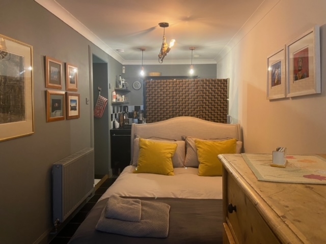 The studio spans the ground floor of a townhouse and sleeps 2 people (low season £700 - high season £900 week ). An open plan sitting, sleeping and well-equipped kitchen area opens through a private door to a separate shower room and separate toilet and a closet for clothes and luggage storage. The studio has gas central heating : free Wi-Fi ; an electric fire ; washing machine and free parking in the laybys opposite the apt. The apt also benefits from a south facing courtyard which is lovely to sit out in.