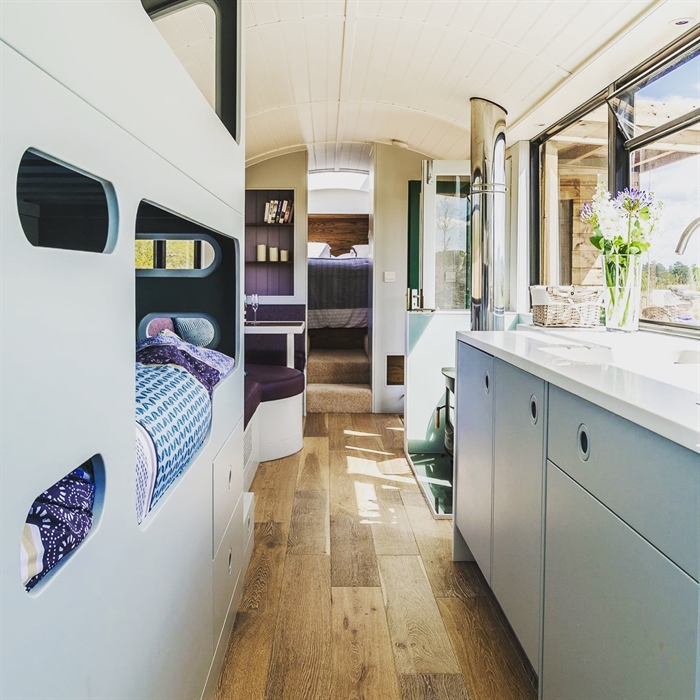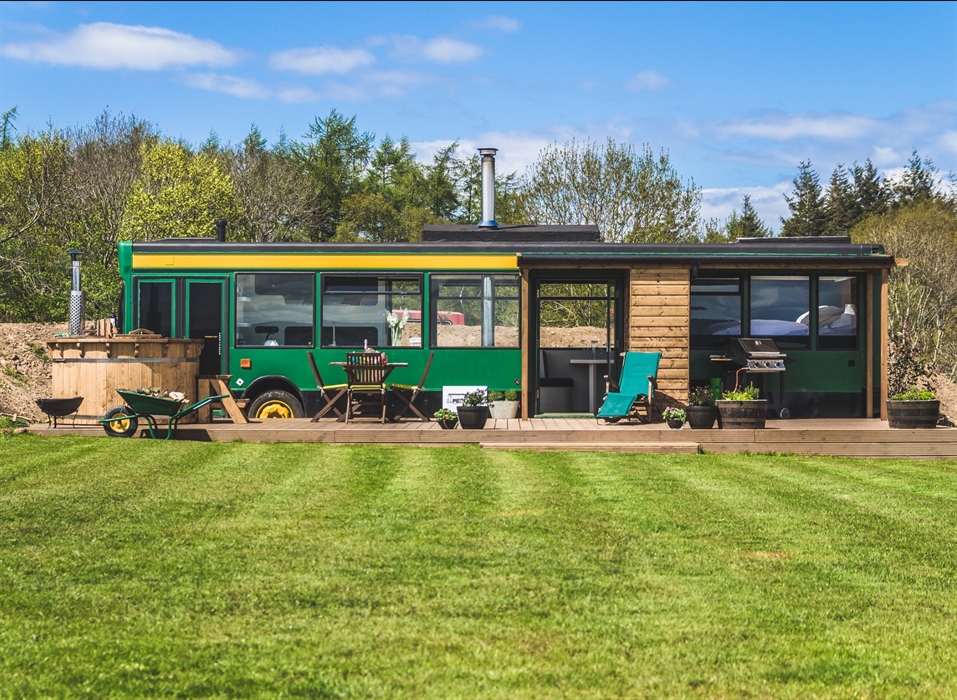 Unique accommodation on a single decker bus, bespoke interior with a touch of luxury. Large deck with log fired hot tub, BBQ, fire pit, set on a spacious grassed area with uninterrupted views of the Lammermuir Hills, a perfect getaway.