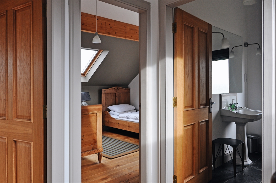 There are three gorgeous bedrooms. The very large master bedroom upstairs offers a quiet sanctuary should you wish to escape to a more intimate space, both double rooms have super king feather topped beds and the smaller twin room is perfect for children. The finest linens are used throughout each room and we can easily make these feather free if required.