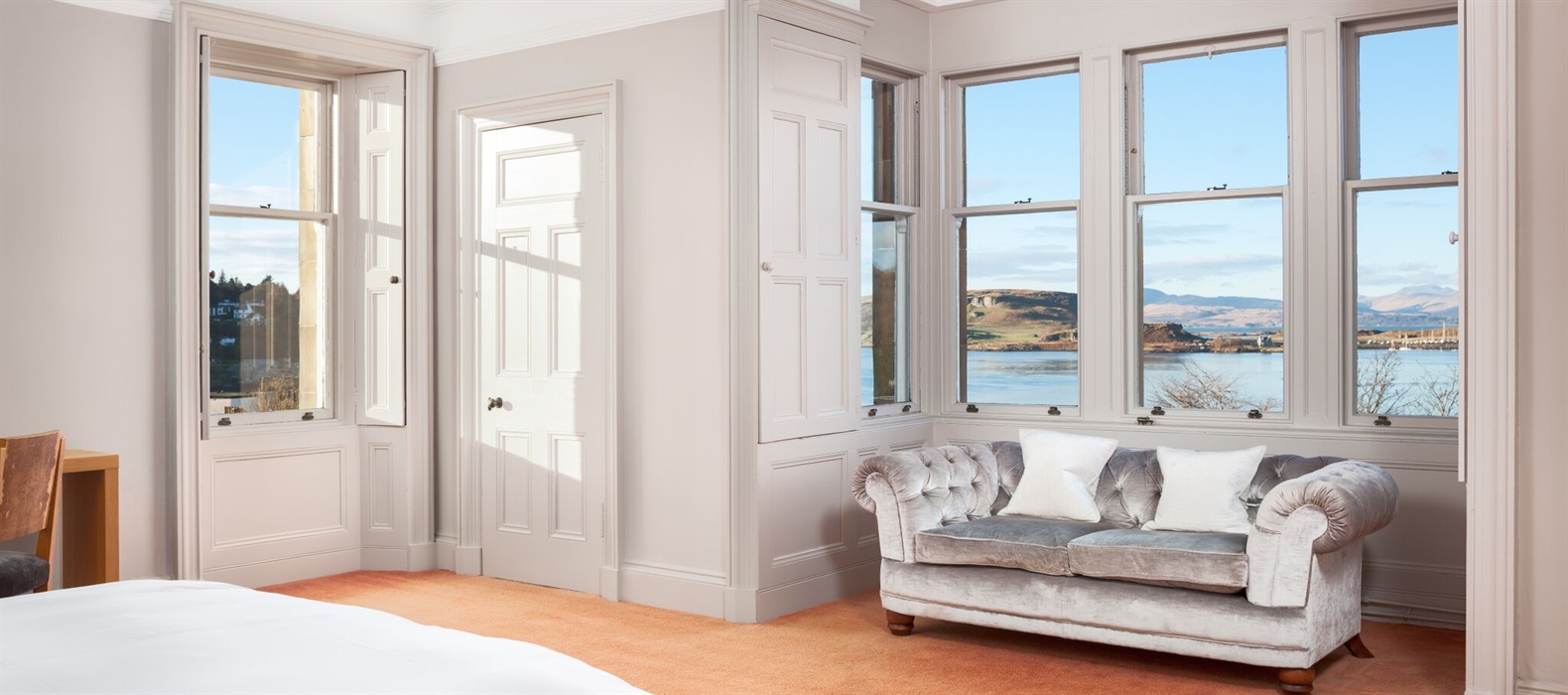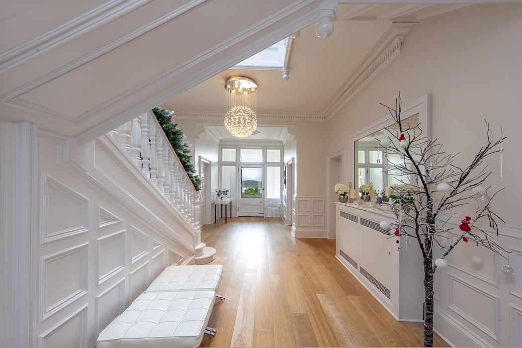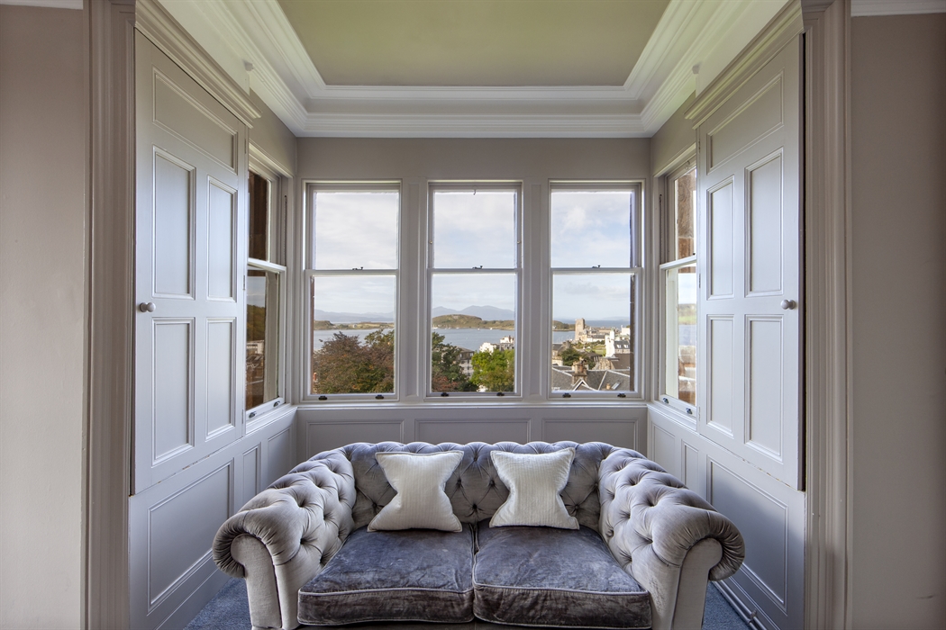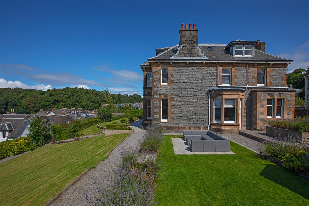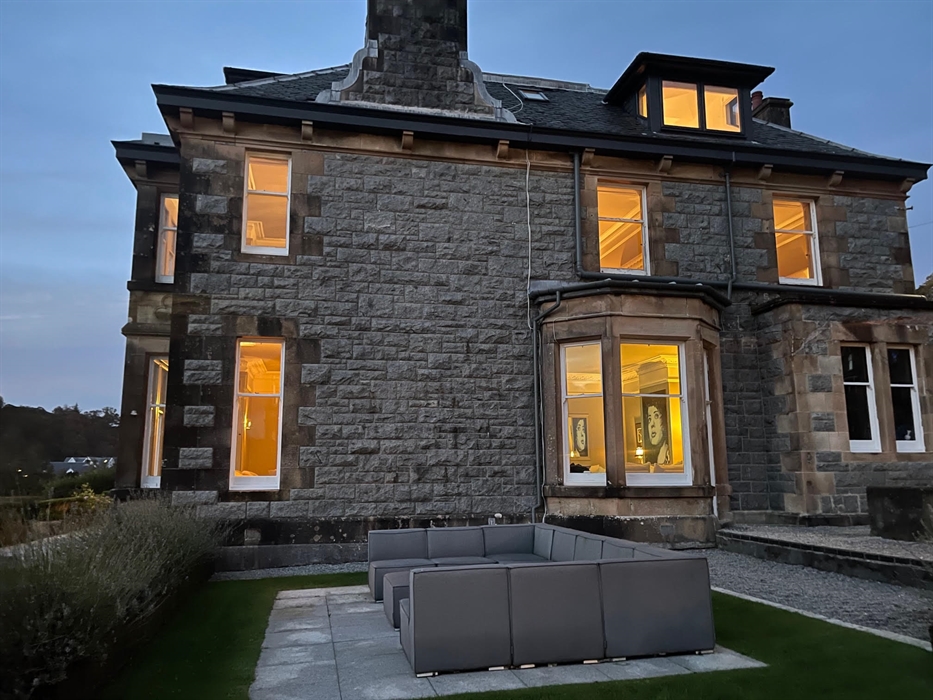 Large luxury self catering Oban mansion, for 22, with elegant, contemporary interiors, beautiful period features, spacious gardens, a hot tub and stunning sea views. 2 hours from Glasgow - the perfect weekend retreat.