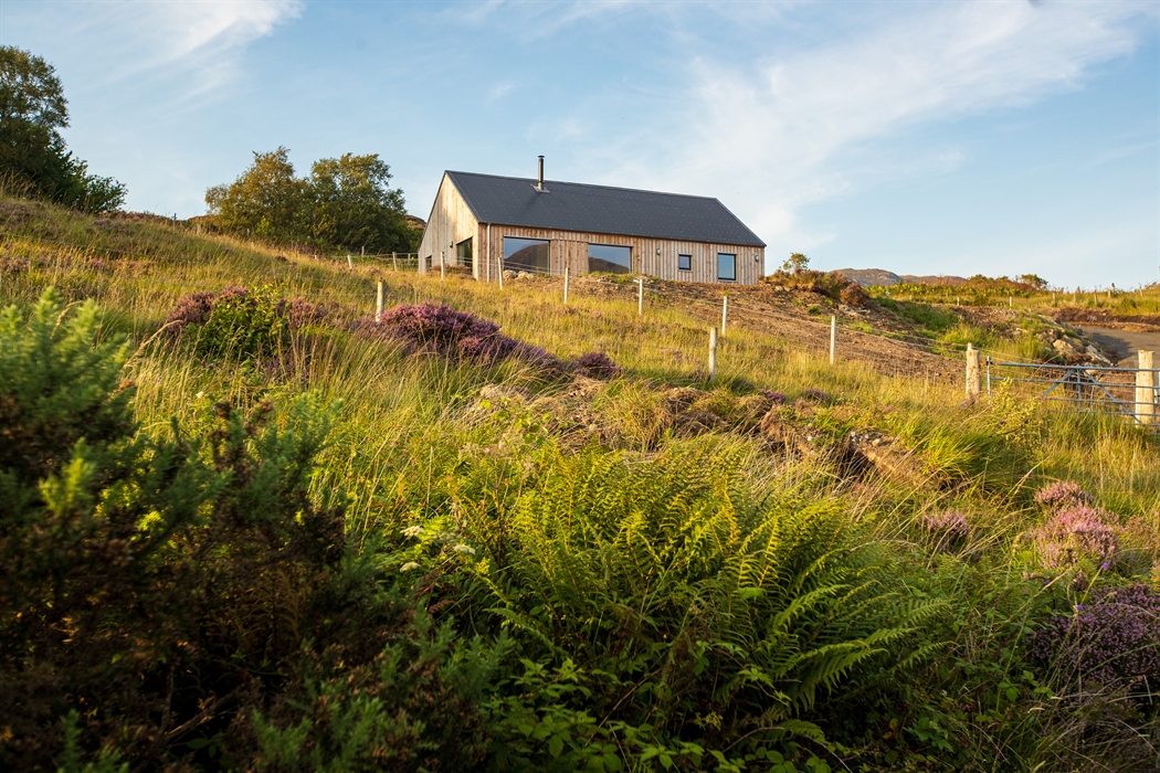 Eco-build timber house in the Scottish Highlands, with spectacular views over Loch Alsh