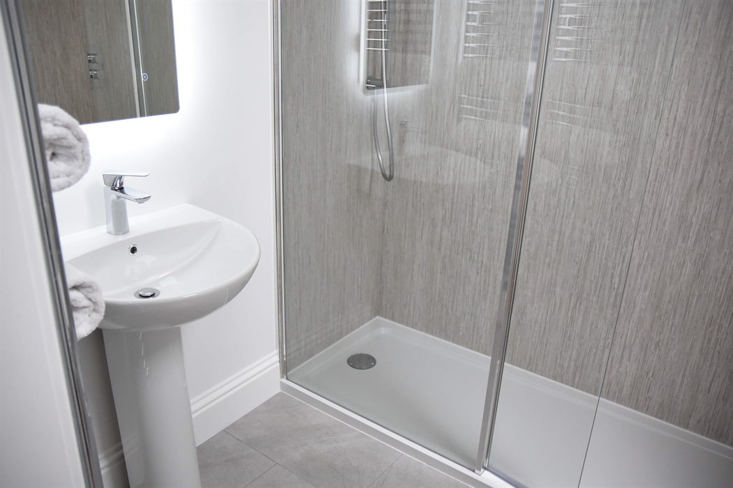 On the first floor you will find two double bedrooms both with free standing storage, bedside tables, integral lighting, and USB charging ports. The shared family bathroom which is accessed via the landing features a walk-in shower, WC, and wash basin, there is also an additional WC on first floor.