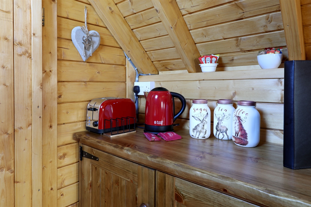 The en suite shower rooms have all you need with toilet, shower, wash hand basin and heated towel rail. Soft, fluffy bath and hand towels are provided, shower gel, soap and shampoo are also provided for your use if required. There is also a small radiator in the main lodge area to provide all round heat if the wood burning stove is not in use.