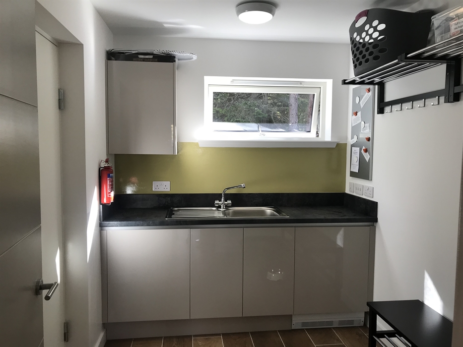 We have kitted out the utility room off the kitchen with a spot for your dog's bed and water bowl. A door leads out to the back garden which is enclosed by a 90cm high wooden fence. There is a tap on the outside wall for rinsing off the worst of the mud after a walk, and there is a supply of dog towels in the utility room.