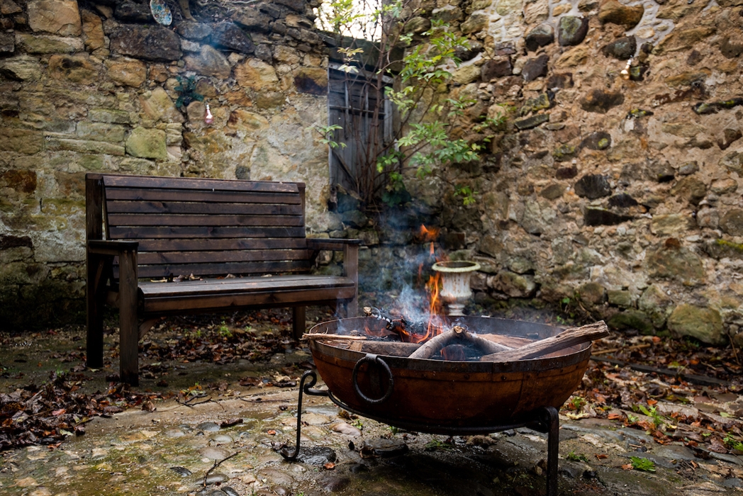 Surrounded by a private courtyard, the access door is framed by mature olive trees with outside seating, including an atmospheric firepit which you can load up with seasoned logs for toasted marshmallows, or the simple enjoyment of togetherness and a spot of star gazing.