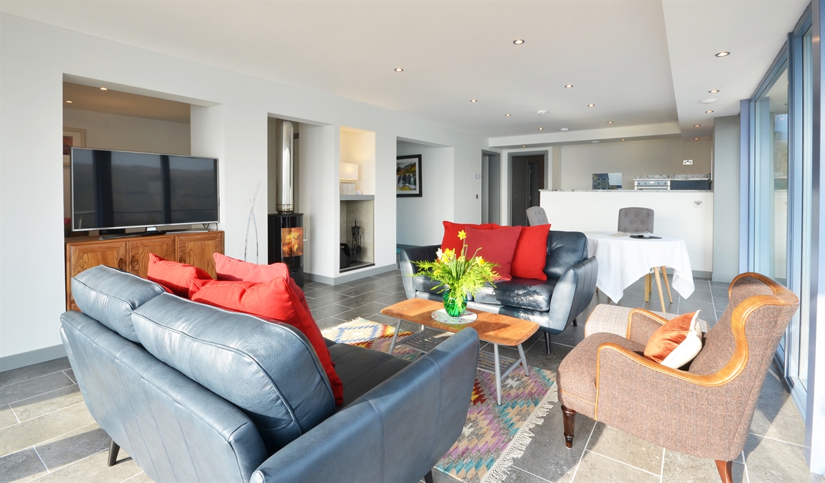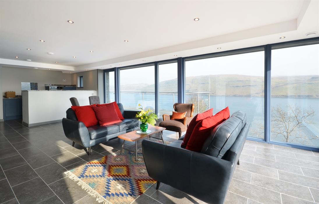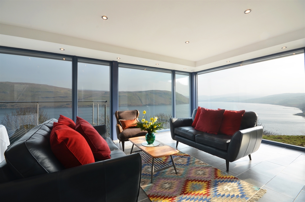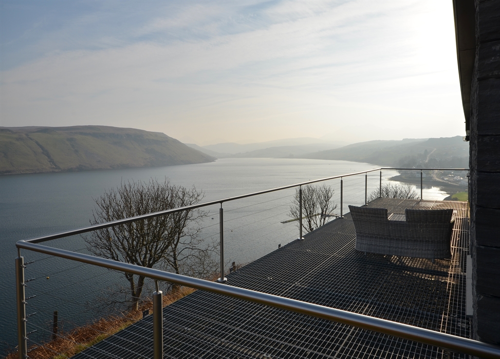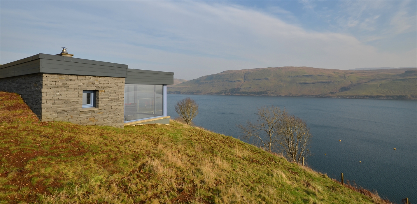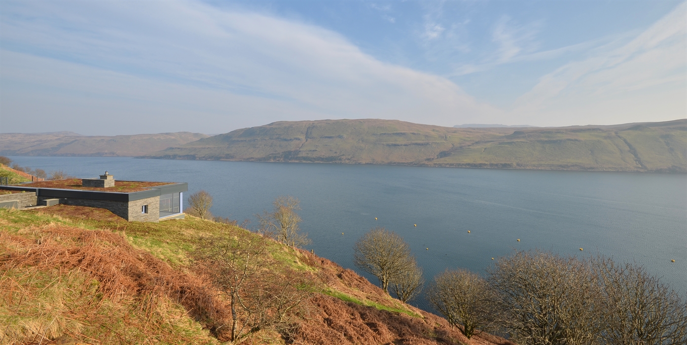The Hillside Hideaway is a modern retreat sitting in a dramatic hillside situation looking out over stunning Loch Harport, 0.5 miles from Carbost on the Isle of Skye.
