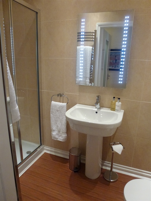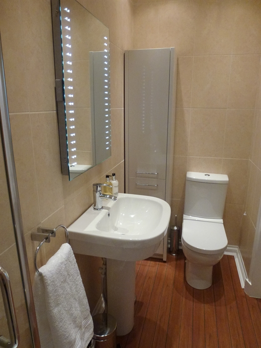 The beautiful contemporary bathroom features a double sized 'couple' shower with body jets and rain head shower, heated towel rail, deluxe heavy weight 800gsm towels, velour bath robes and a heated (demisting), illuminated mirror - perfect for make up application. There's also an electric socket for shavers on the side of the mirror. We also provide luxury full size Cole & Lewis products for use during your stay – shampoo, conditioner, shower gel, hand soap and hand & body lotion.