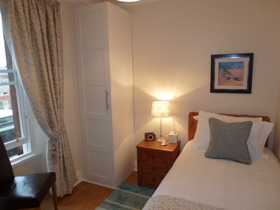 The Apartment primarily sleeps 3 in 5 star luxury (king size and single bed) but can accommodate an additional small child by utilising a solid oak bespoke trundle bed (suitable for small children only as is 2.5ft wide by 5ft long). Baby Travel cots are also available upon request.