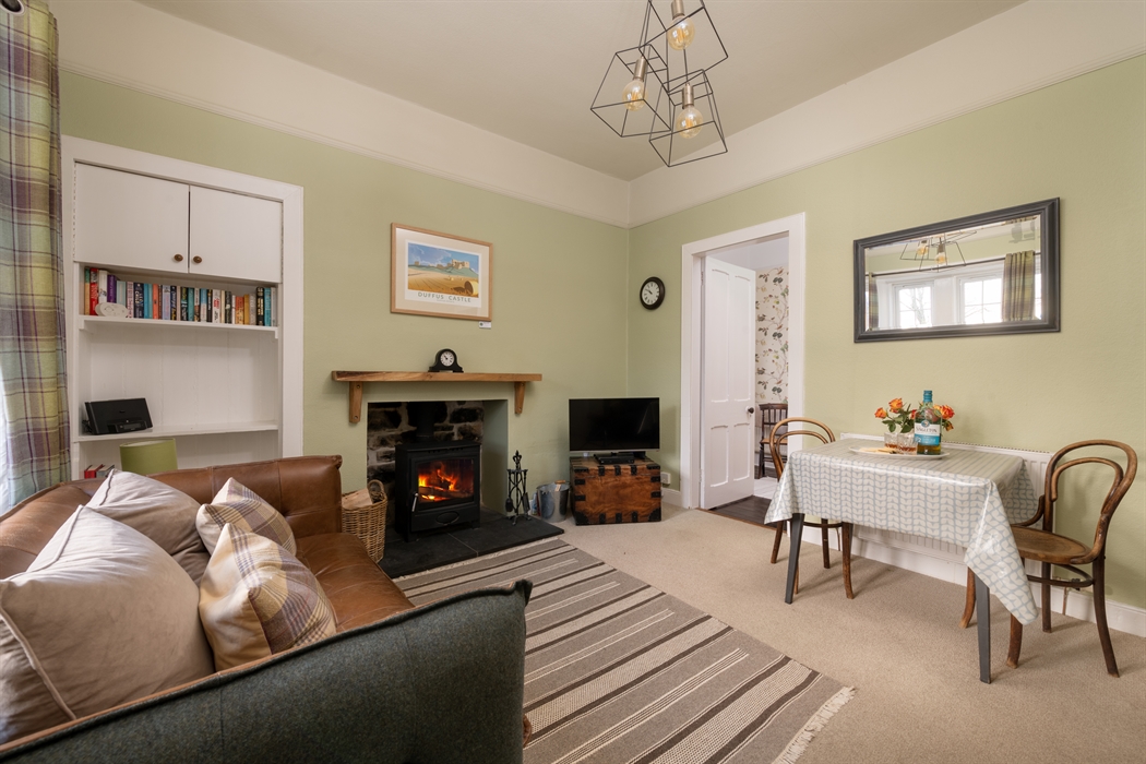 Living room/dining area – wood burning stove, TV, Freeview, DVD, radio, books, games