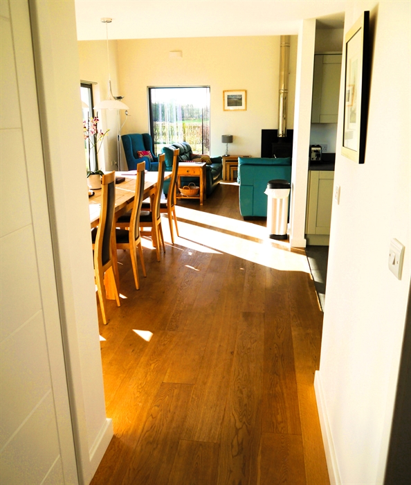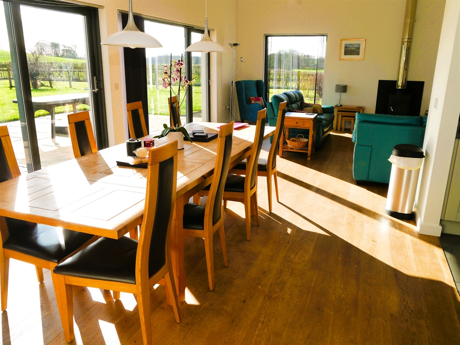 Accommodation for 8 guests over 2 floors: Ground Floor; Open plan Kitchen/Dining/Living area with Wood Burning Stove (initial supply of fuel provided) and 42” Smart TV and stairs leading to the first floor; Master Double bedroom with ensuite shower room with Rain shower and hand held attachment; Bunk bedroom; Family Bathroom with over bath Rainwater shower and a hand held attachment, WC and wash basin; Utility room with Washing machine * Drier and sink. First Floor: King size bedroom; Twin bedroom; Family shower room with WC and wash basin. Outside large patio area with Hot Tub, garden furniture and BBQ; Outside games room with snooker table and table tennis; Ample off-road parking.