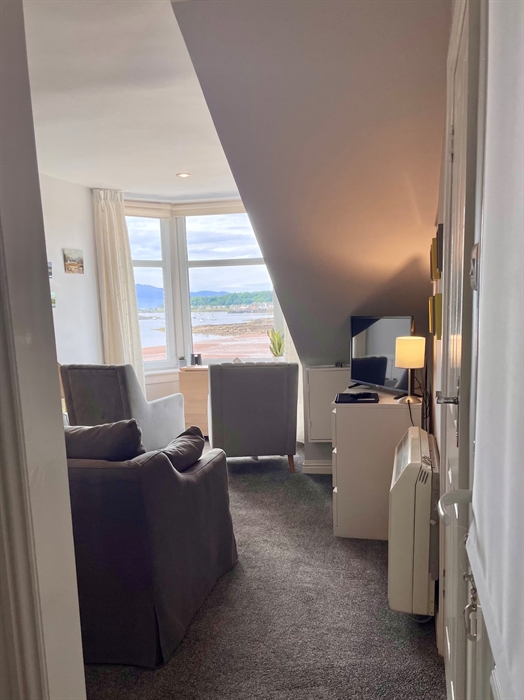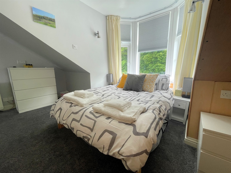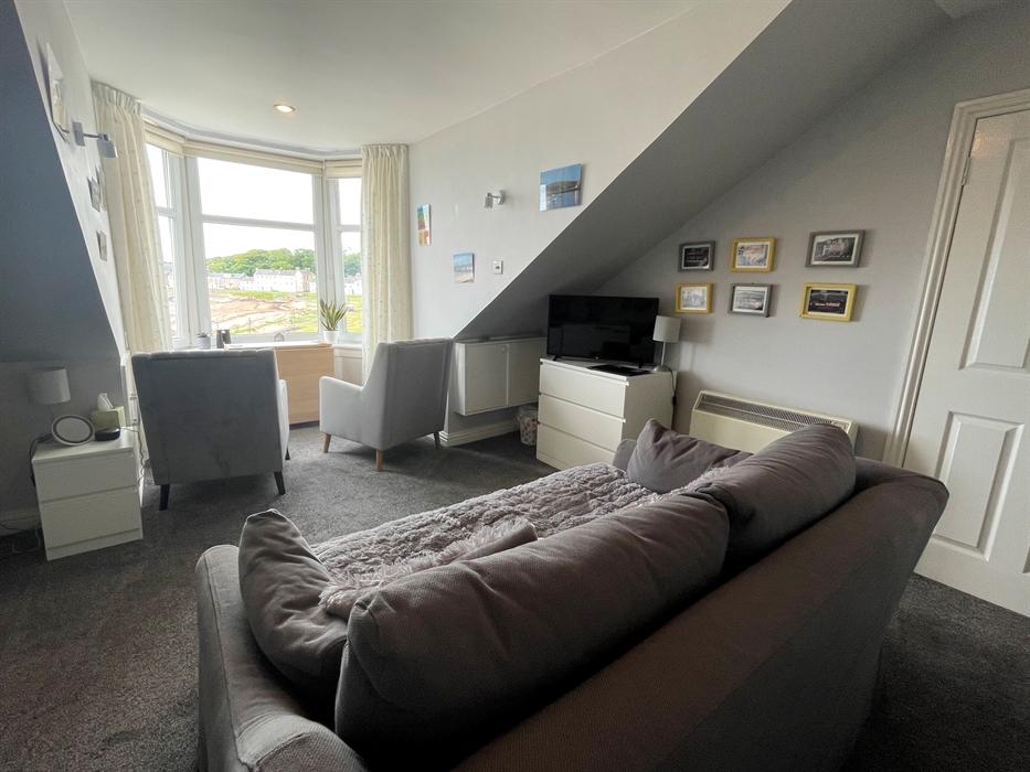 Refurbished cozy top floor attic flat (2nd floor), with fabulous sea views overlooking Kames Bay beach, Millport town and Arran in the background. Located on Marine Parade, away from the hustle and bustle of the town centre. One bedroom with a double bed, and a double sofa bed in the lounge/kitchen. Bathroom with shower & WC. Smart TV with Freesat and Netflix subscription. WIFI. Towels and all linens supplied, kitchen essentials and electricity included.