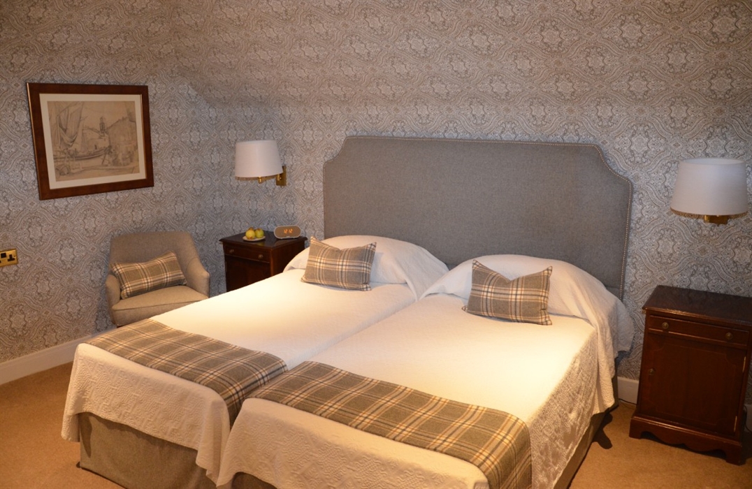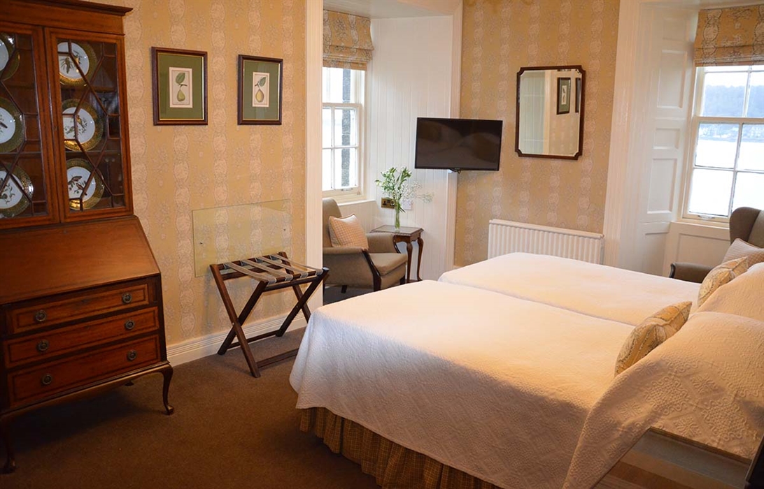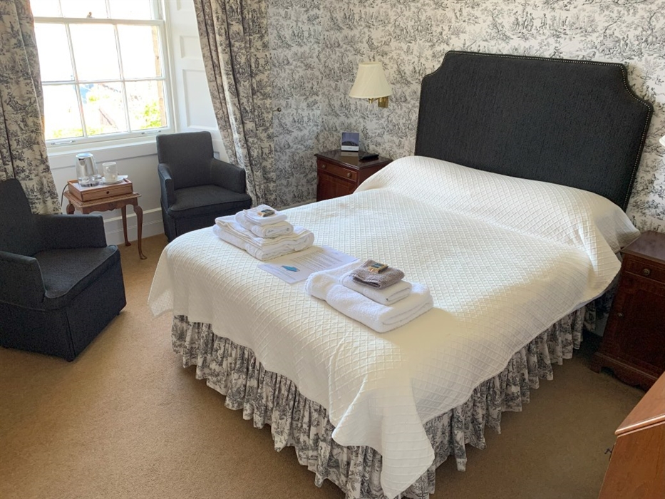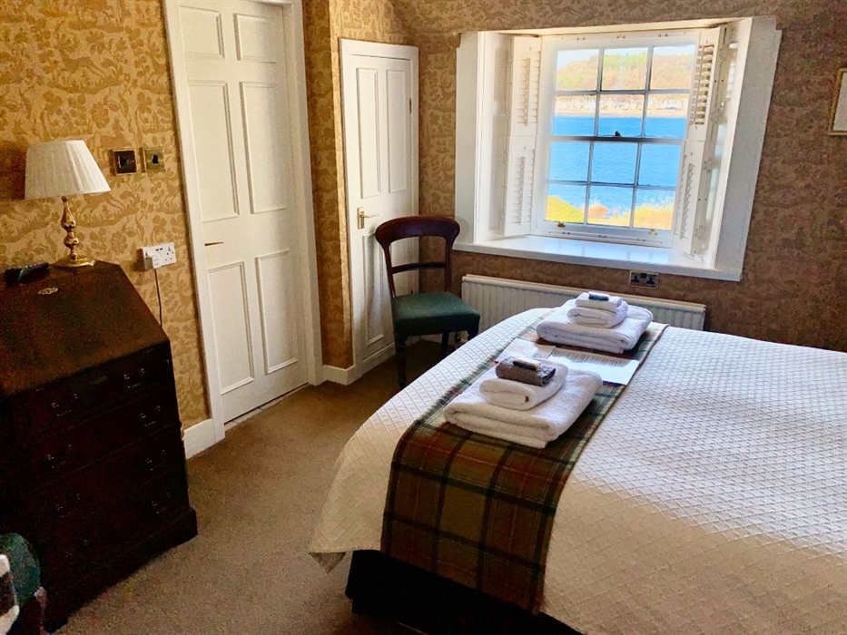 Our hotel with restaurant combines excellent and friendly service with the charm of a listed building rich in heritage and character. The Manor House is particularly known for its beautifully restored dining room, which is open to guests every evening. Afternoons can be enjoyed on the terrace with majestic views of Oban Bay and beyond. Alternatively, you can take a stroll through the garden with its Georgian-inspired layout, keeping the spirit of a naturalistic park and pleasure ground alive. In front of the building you can find our private waterfront access and discover the old oyster bed. The open fire in the drawing room invites you to indulge in the opulence of the early years of the house whilst drinking afternoon tea accompanied by small delights. Find us in the adjoining bar, the perfect place for a wee dram to round off an unforgettable day. All our common areas face the garden and offer stunning views over Oban Bay, the adjacent islands, the mountains of Morvern and the Isle of Mull. Our period-style bedrooms are tastefully decorated, and all have ensuite facilities.