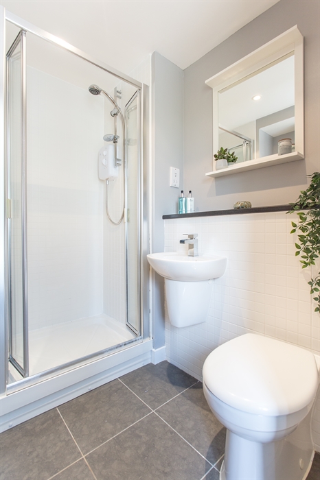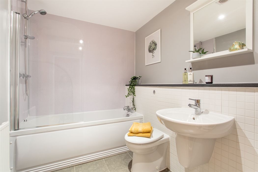 The second bedroom is again decorated in calming contemporary colours and benefits from a comfortable double bed. A family bathroom with a thermostatic shower over the bath completes the layout.