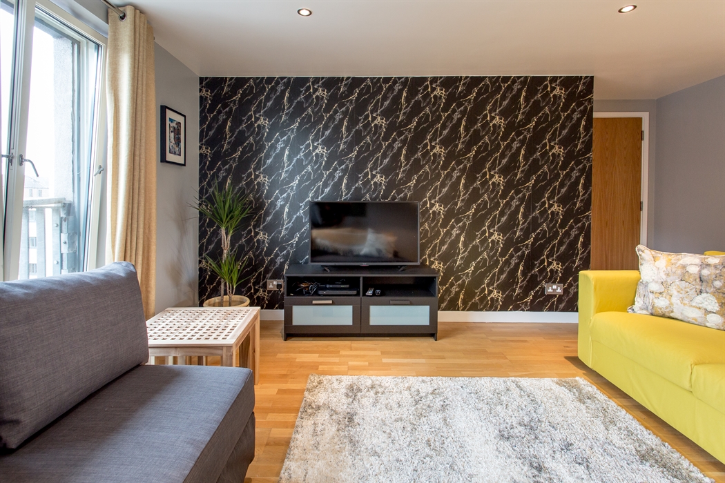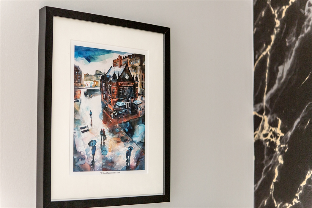 The apartment is a few minute’s walk from the vibrant Merchant City, an area redolent of Glasgow’s historic trading past and packed with chic bars and restaurants not to mention designer shops