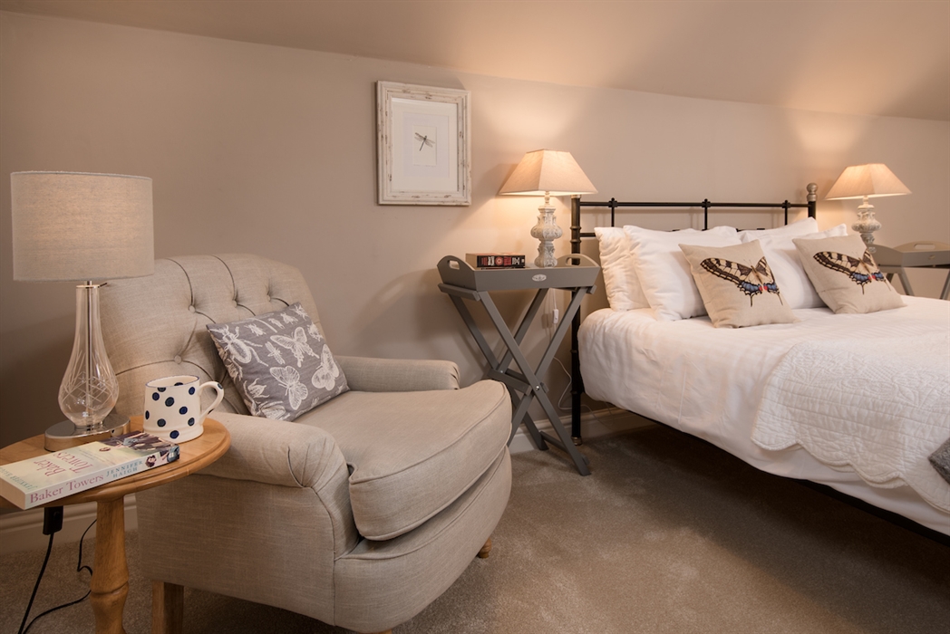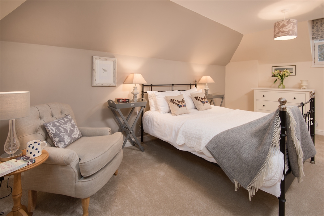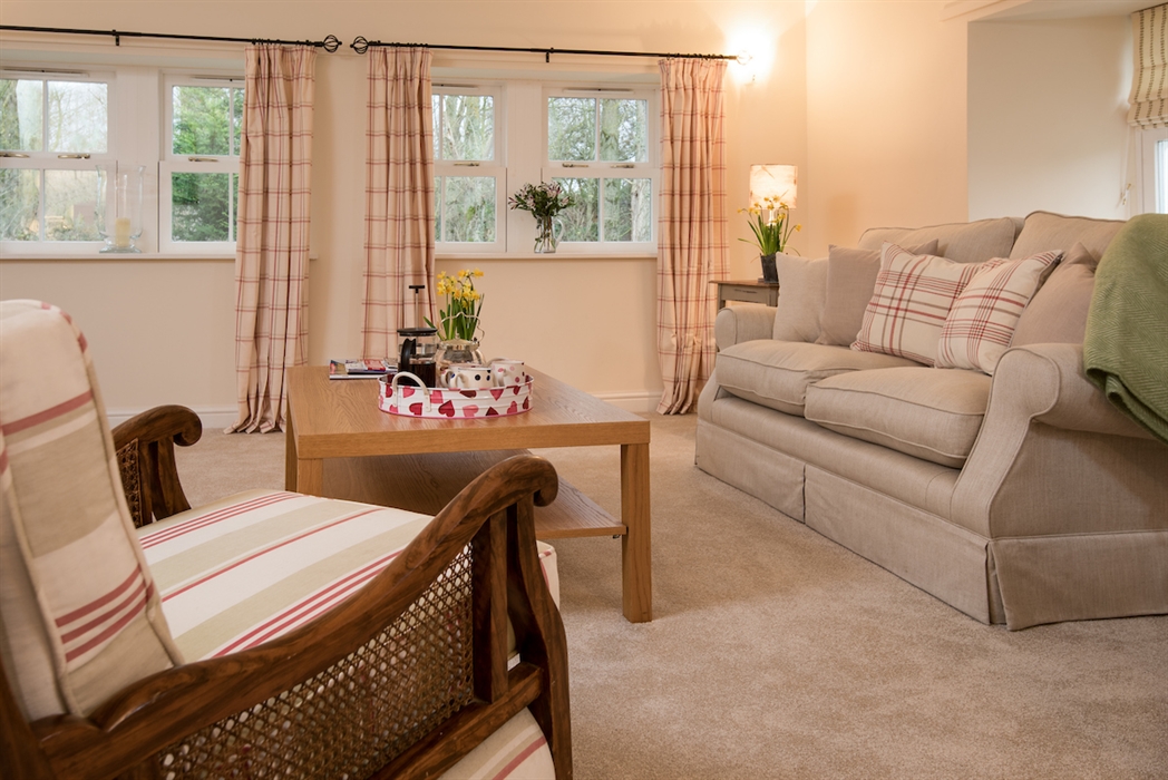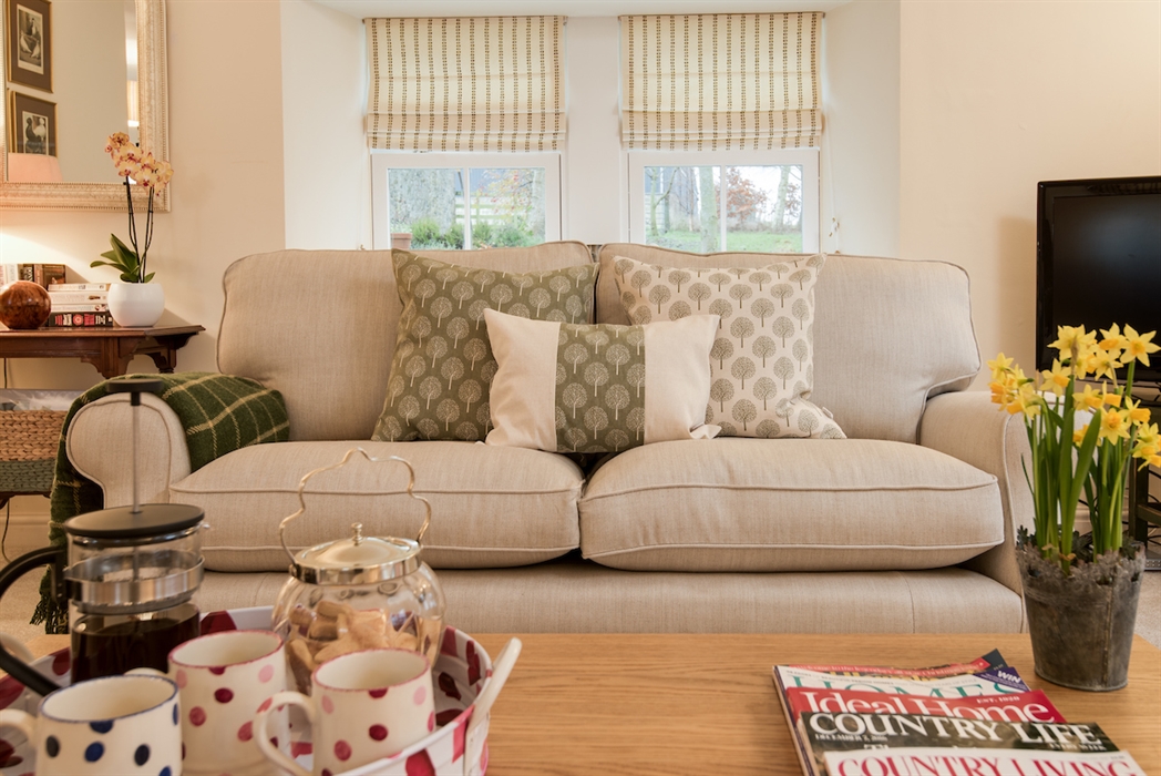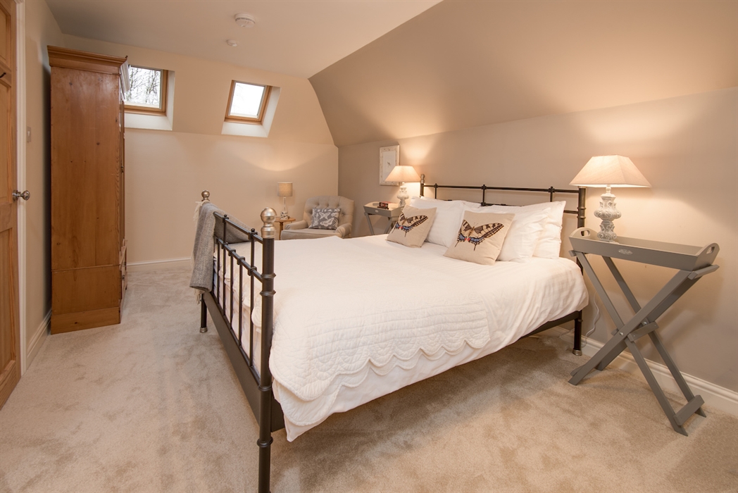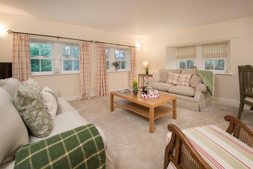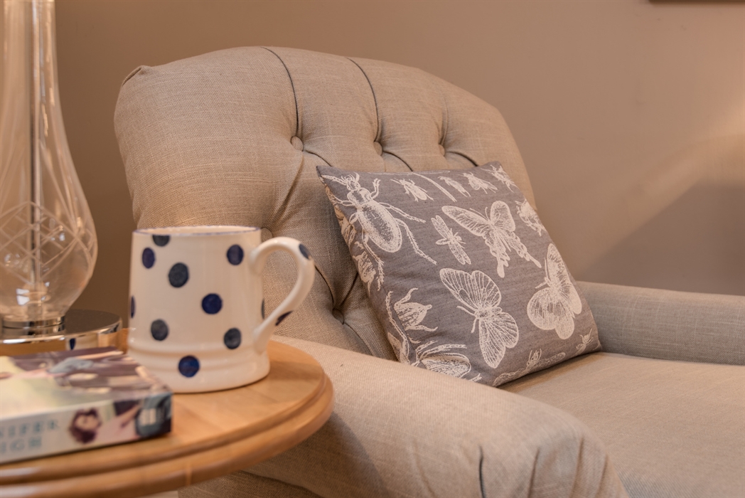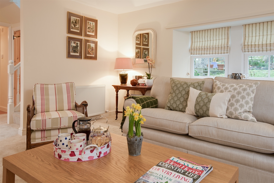 Inside, the sitting room has an effortlessly stylish scheme which exudes warmth and comfort, filled with light from windows on every side overlooking the pretty cottage garden and the mill stream below. Add plush carpeting throughout, comfortable sofas, and quality soft furnishings from local producers to the mix and you are promised a really rather lovely holiday stay.