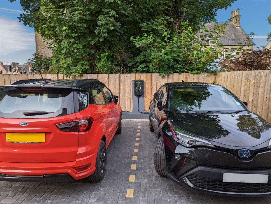We have free private off-street parking for four standard sized cars and secure anchor fixings for motorcycles. There is an 11kw Electric Vehicle charging point for each parking space, so every guest room has a dedicated EV charging point.