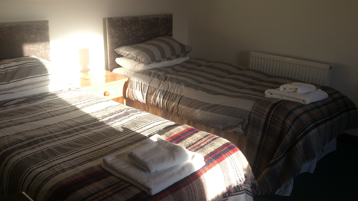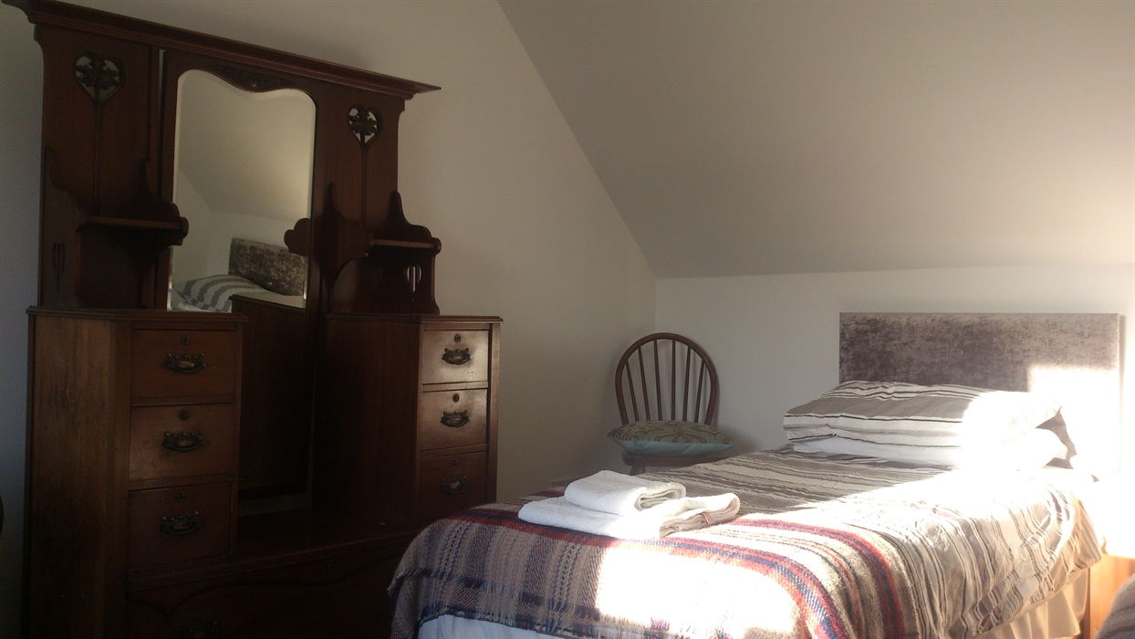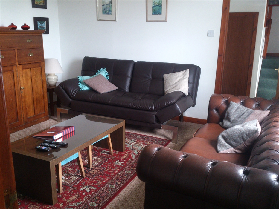 First Floor – Two bedrooms, each with twin beds, lamps, drawers and chairs. All the bedrooms have views over the village and harbour. The sitting room above the kitchen also has comfortable seating and emergency double bed.