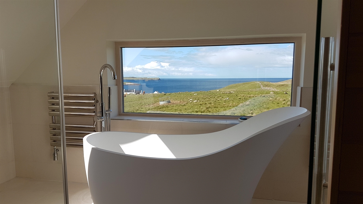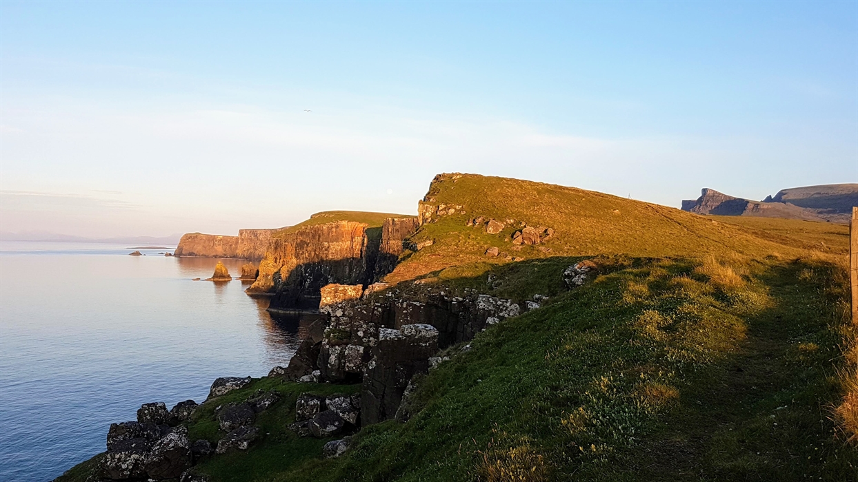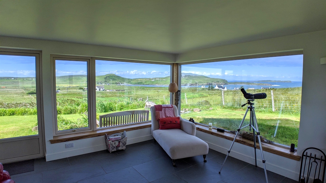 Situated on the stunning Trotternish peninsula of Skye, The Old Croft House cottage provides high quality accommodation that sleeps four in two en-suite bedrooms (1 king, 1 twin). It is a very well equipped, warm and welcoming 'home from home' in a lovely, quiet and peaceful location, with panoramic views across the bay and beyond. Sit back and relax and watch spectacular sunsets unfold in comfort. It's a great base for visiting many places of interest too, as the Trotternish is rich in history, and renowned for its wild landscapes of beauty and wildlife. There are dark skies too, making it an amazing place for stargazing; on clear evenings you may see the Milky Way and the magical Northern Lights.