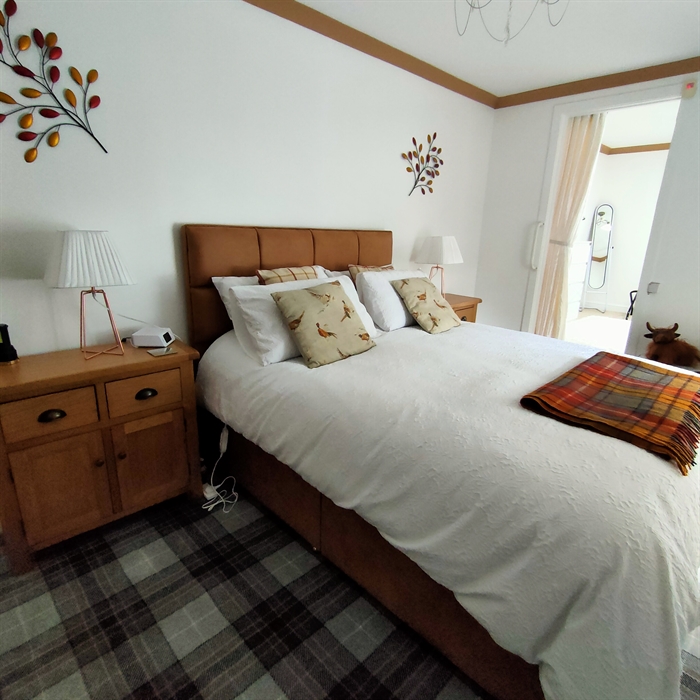 There is a very comfortable sitting room with black watch tartan carpet, Smart TV with Netflix etc and virgin cable tv too, a bookcase full of information and magazines. There are two en-suite bedrooms. The double bedroom has fitted mirror wardrobes with ample storage space, clock, radio and remote control frreeview TV. There is an electric blanket on the bed and there is a shower/toilet with shaver point within the bedroom. The other bedroom is a twin with two single beds (both with electric blankets) and also clock radio and remote control freeview TV. There is also a toilet/shower and shaver point in this room as well.