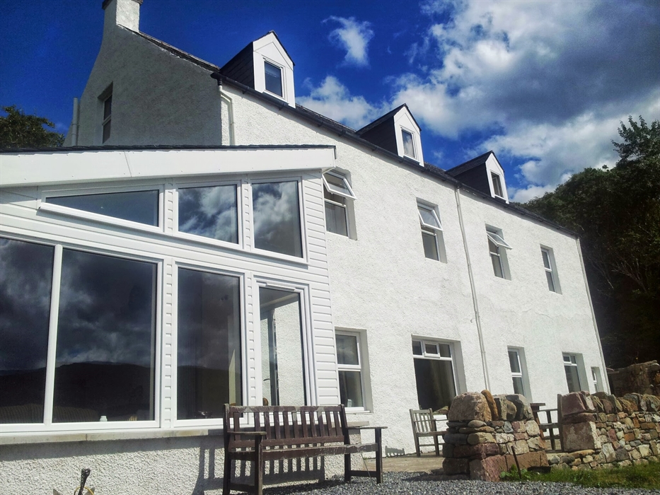 The Old Tweed Mill is a beautifully sighted and extremely comfortable property in the North West Highlands of Scotland. Sleeps 12, pets welcome. It is set on its own beach with rooms commanding stunning views across Loch Broom, the hills and Ullapool