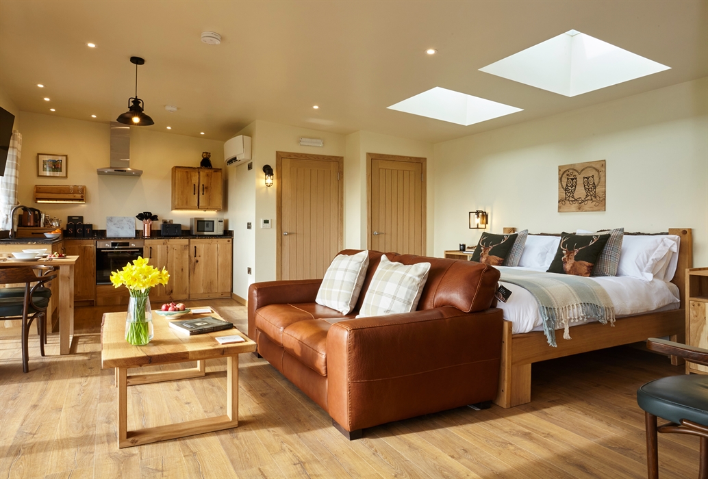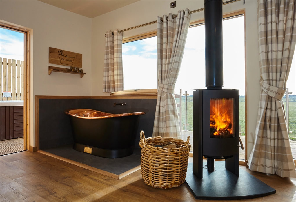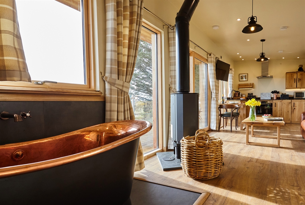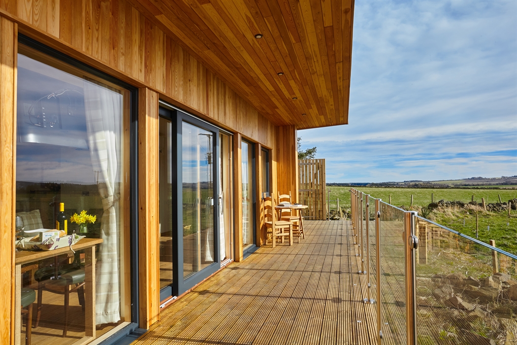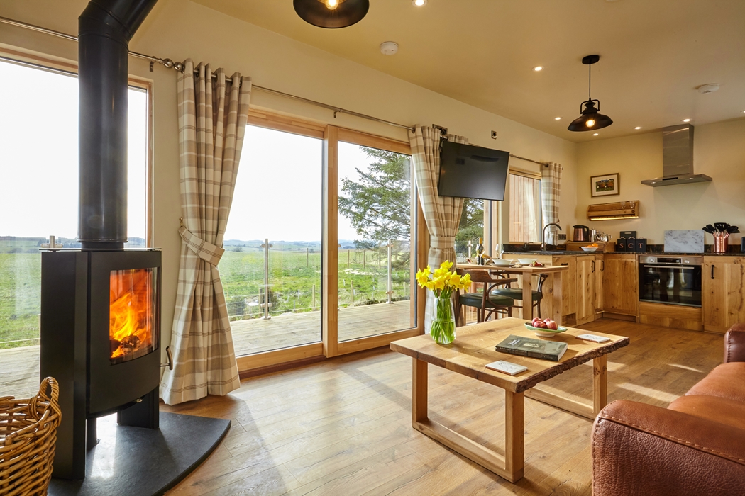 An inviting hideaway tucked away amongst trees with wonderful open rural views that can particularly be enjoyed from its luxurious outdoor hot tub, just 3.5 miles from picturesque St Andrews on the Fife coast.